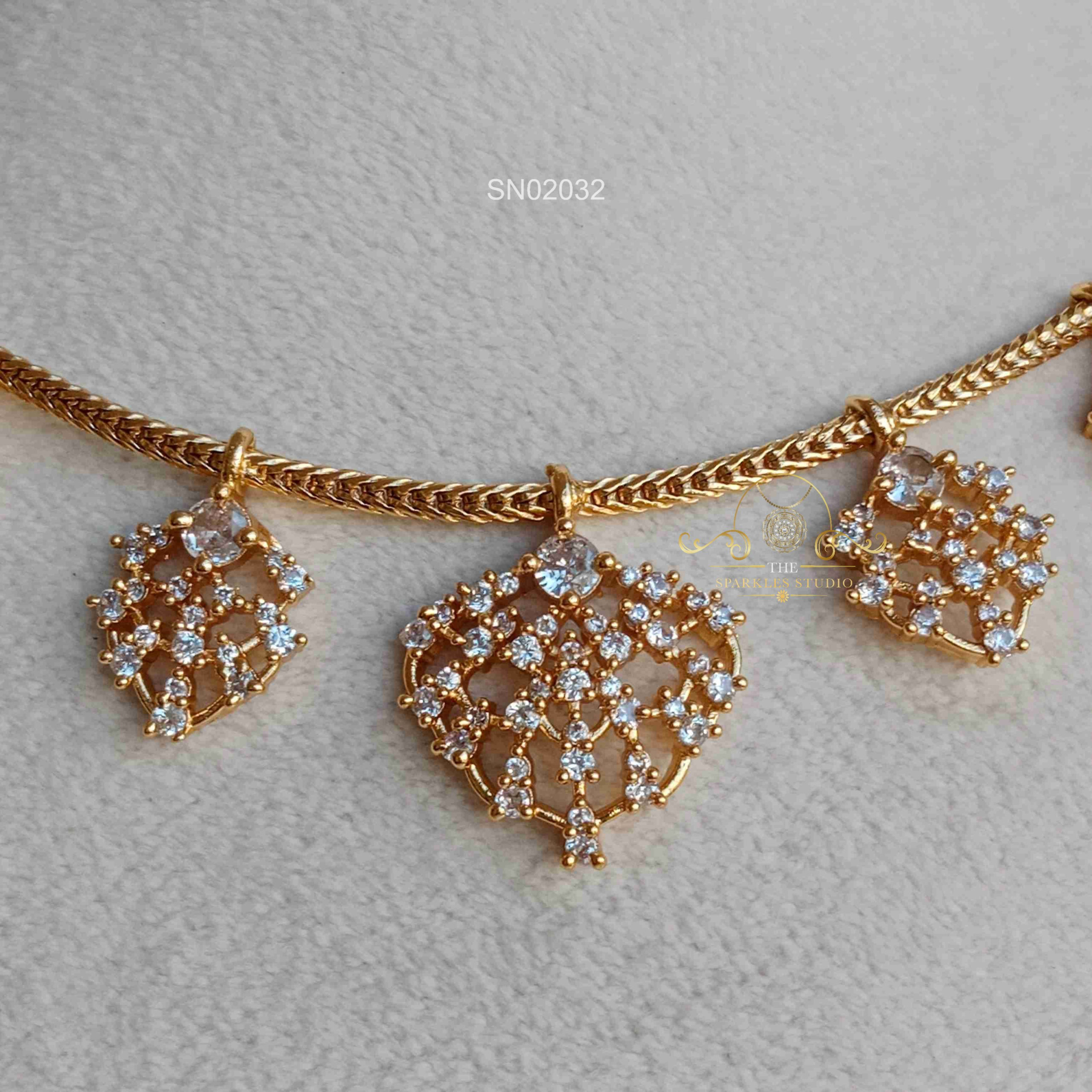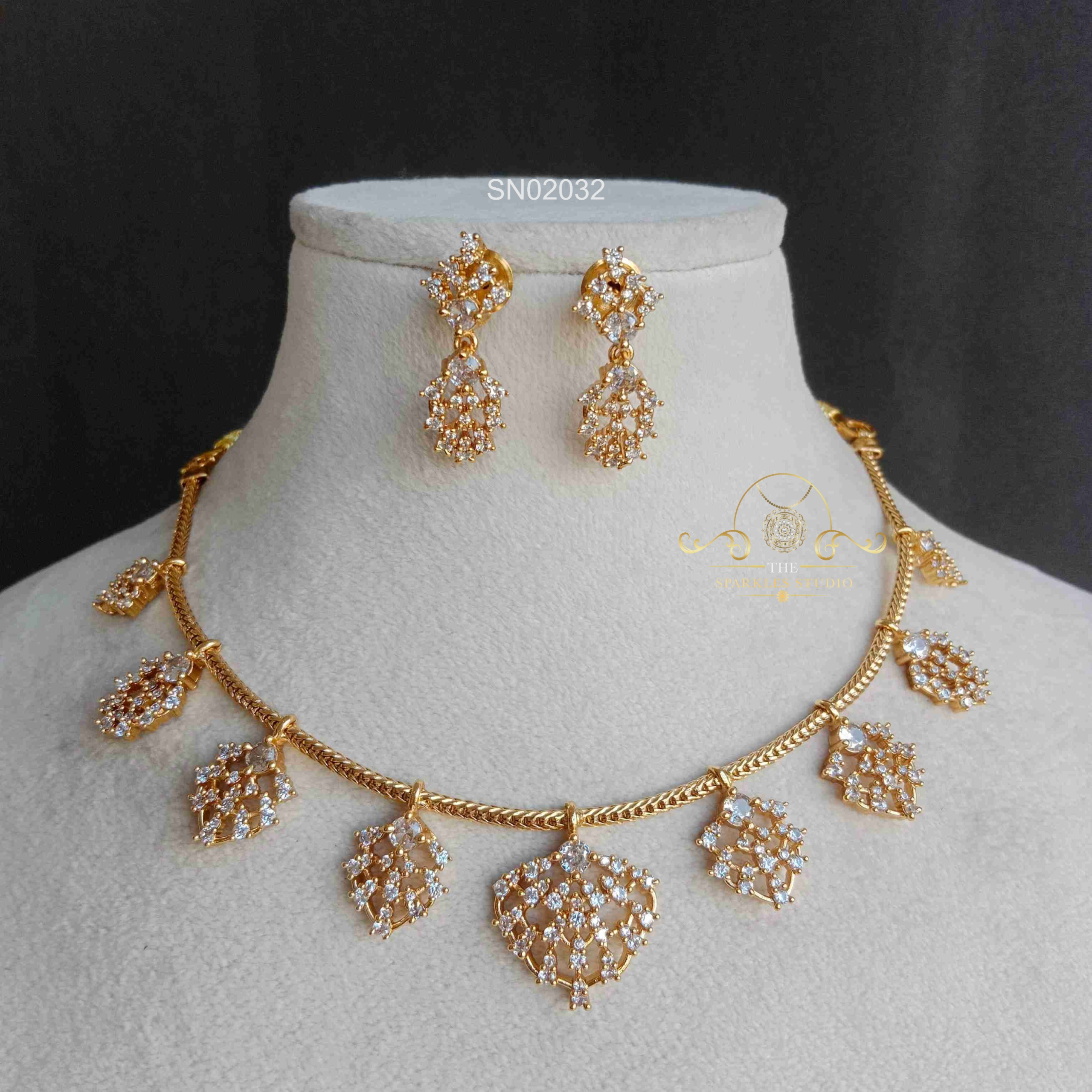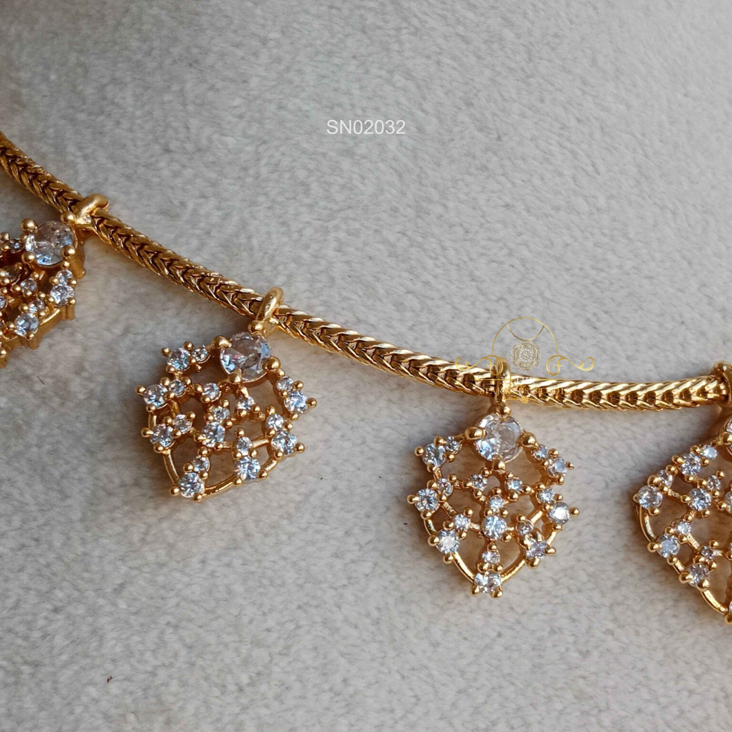 AD Drop Necklace sparkles with finely set American diamonds and elegant drop accents that add graceful movement. Chic and versatile, this necklace beautifully enhances party wear, festive outfits, and special occasion styling.