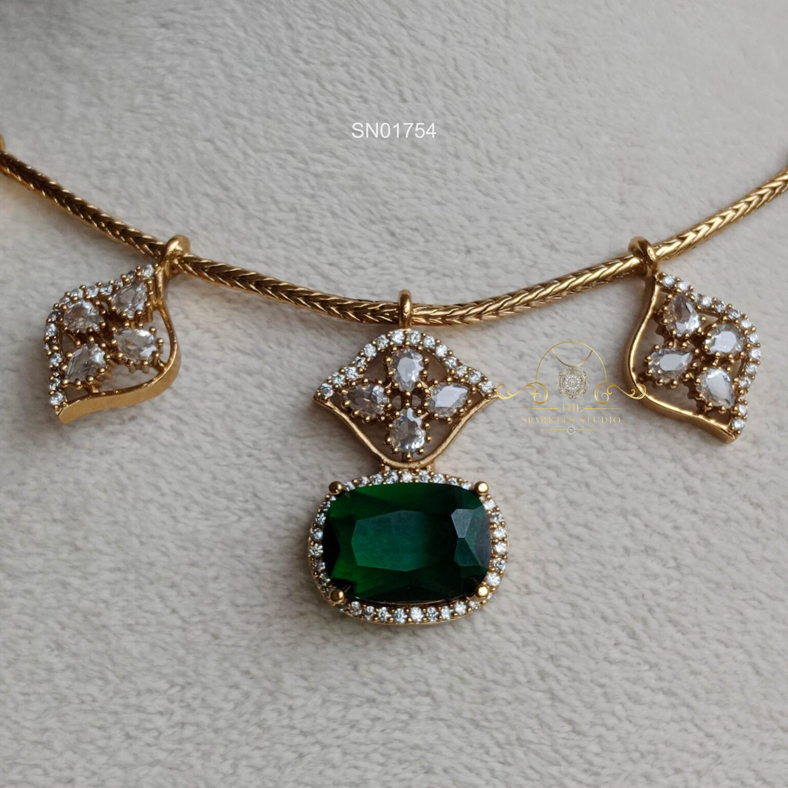AD Drops with Emerald Stone Pendant Necklace