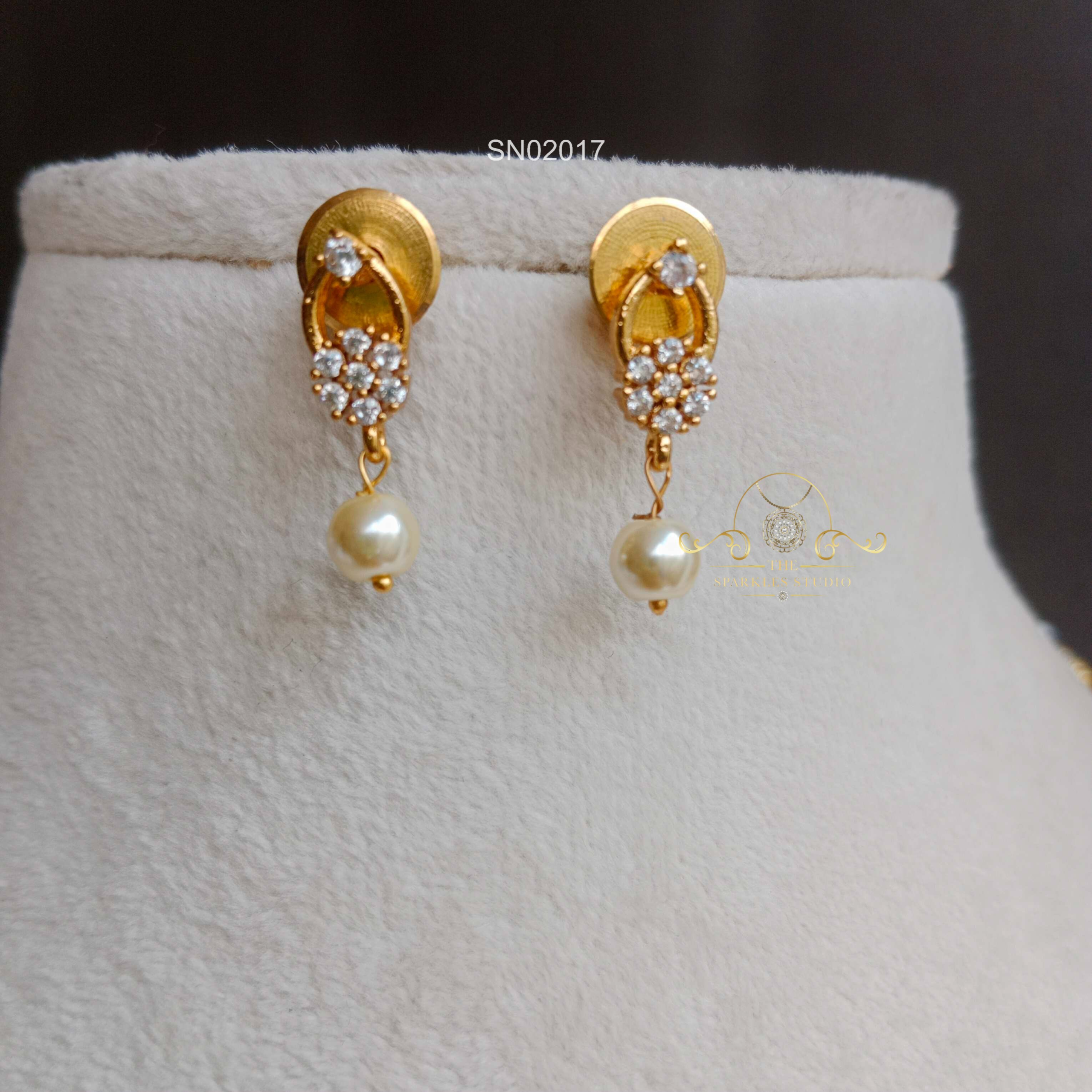 Adorn yourself with the regal charm of Elephant Studs featuring Emerald and White Stone Hanging with Pearl Drops. These intricately designed earrings combine the symbolism of elephants with the richness of emerald and white stones, creating a stunning accessory.