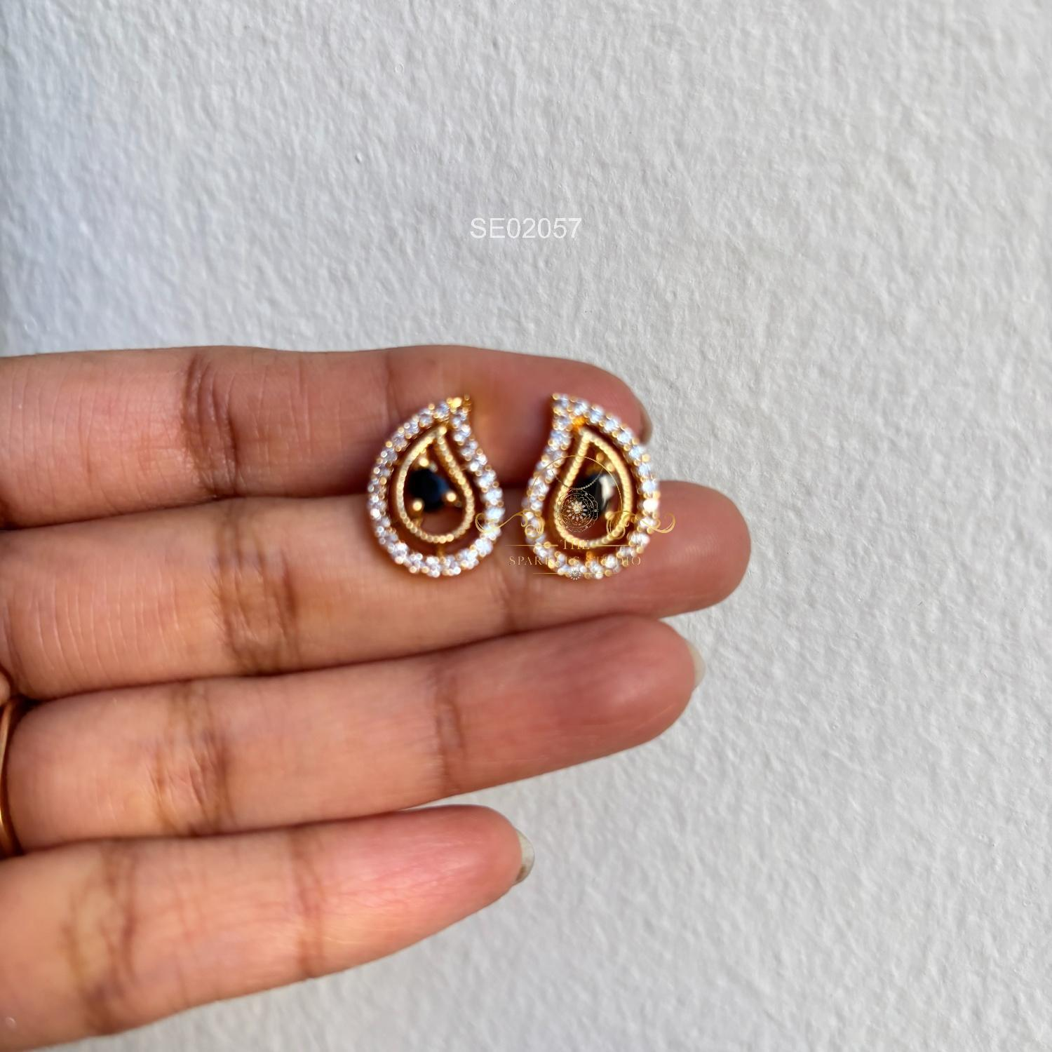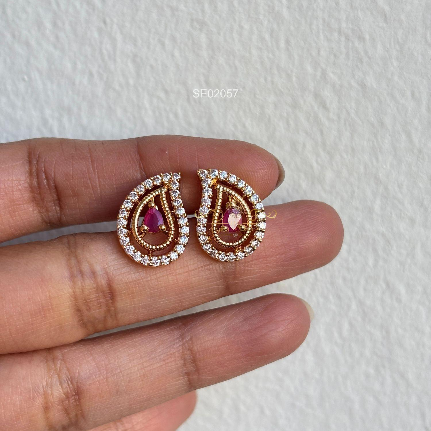 AD Mango Earstuds showcase sparkling American diamonds set in a delicate mango-inspired design, offering lightweight comfort, radiant shine, and versatile elegance perfect for festive occasions, parties, and everyday glamour wear.