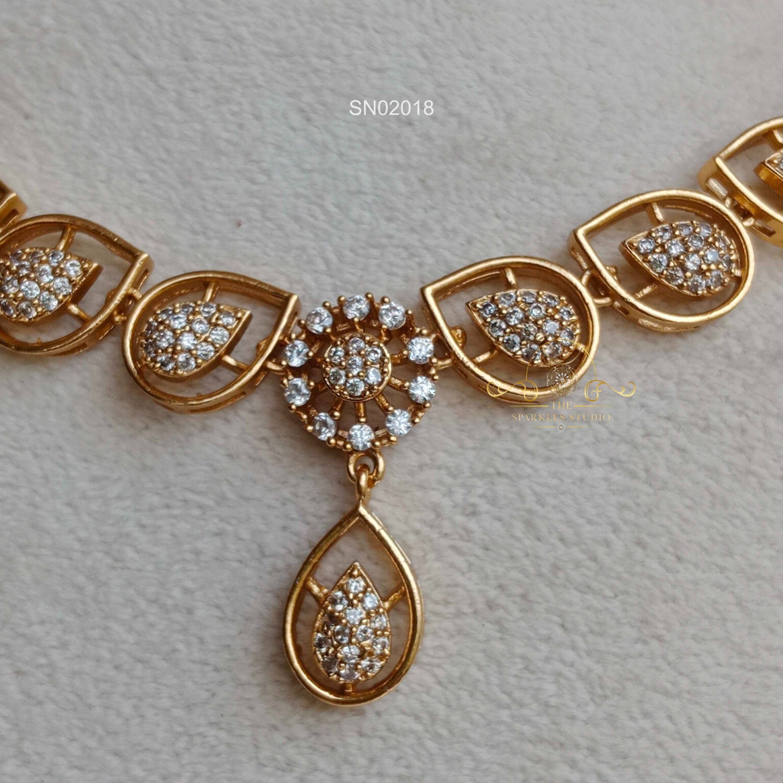 AD stone necklace set featuring brilliant sparkle, refined craftsmanship, and elegant design, perfect for weddings, festive occasions, and sophisticated traditional or contemporary styling.