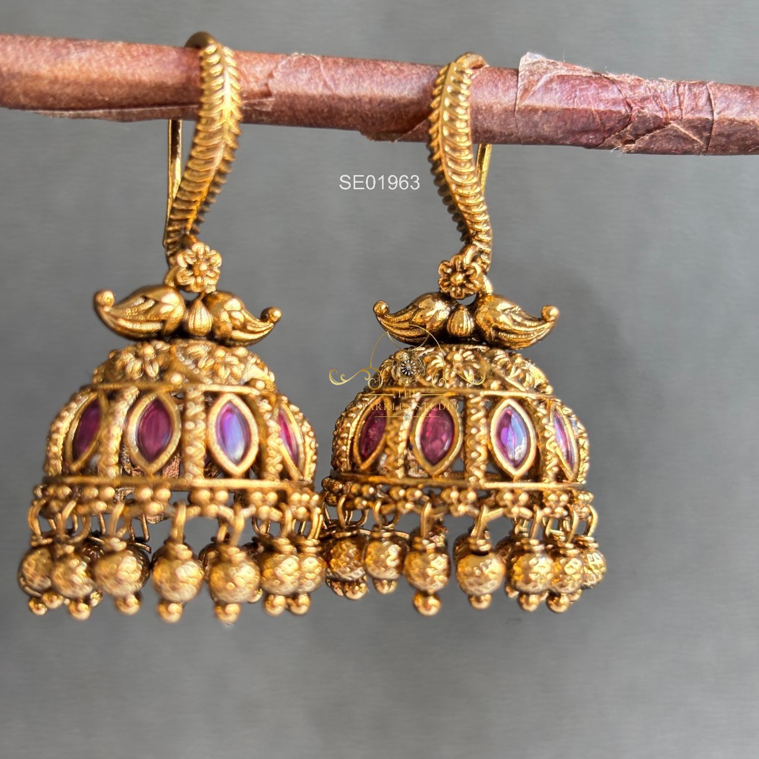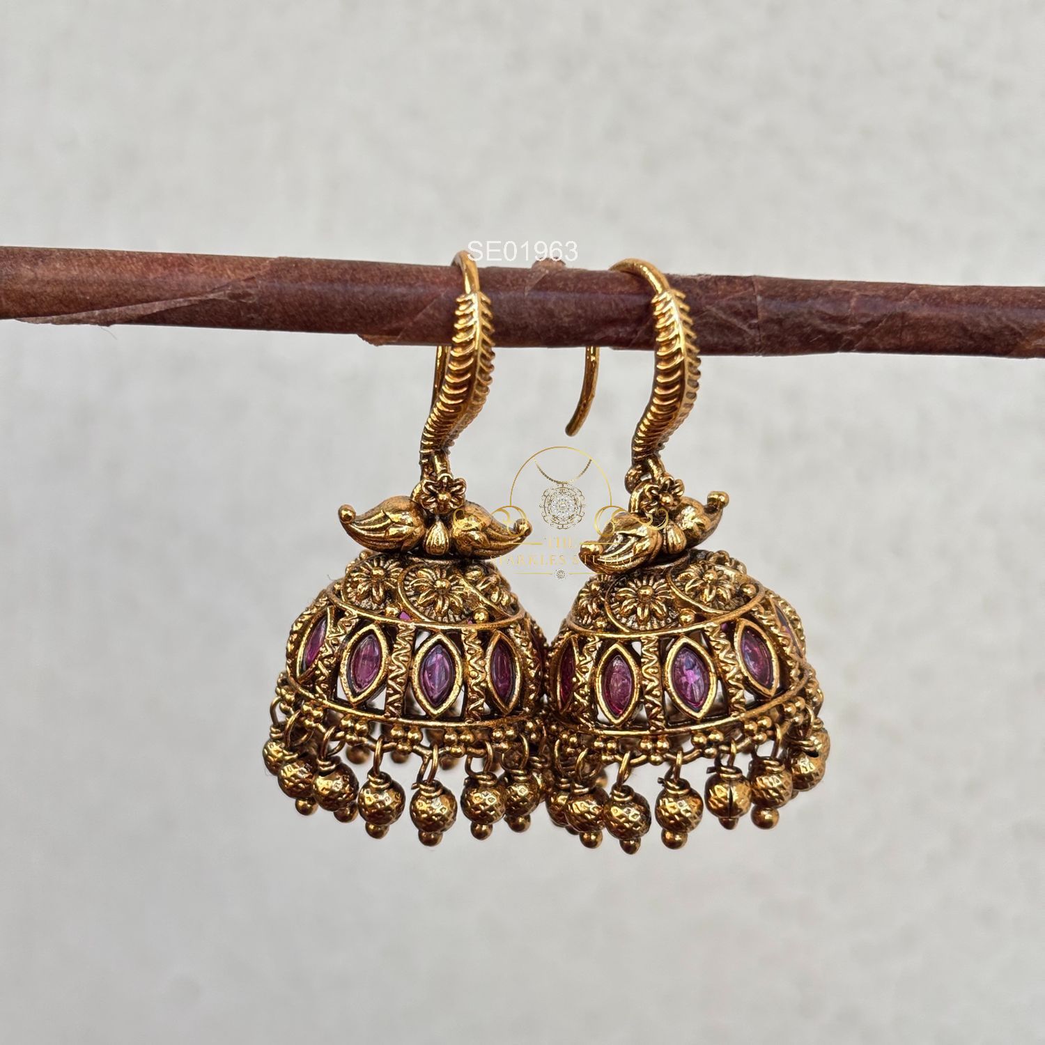 Antique hoop jhumkis featuring timeless detailing and vintage charm, perfect for elevating traditional outfits with a touch of heritage elegance and classic Indian craftsmanship.