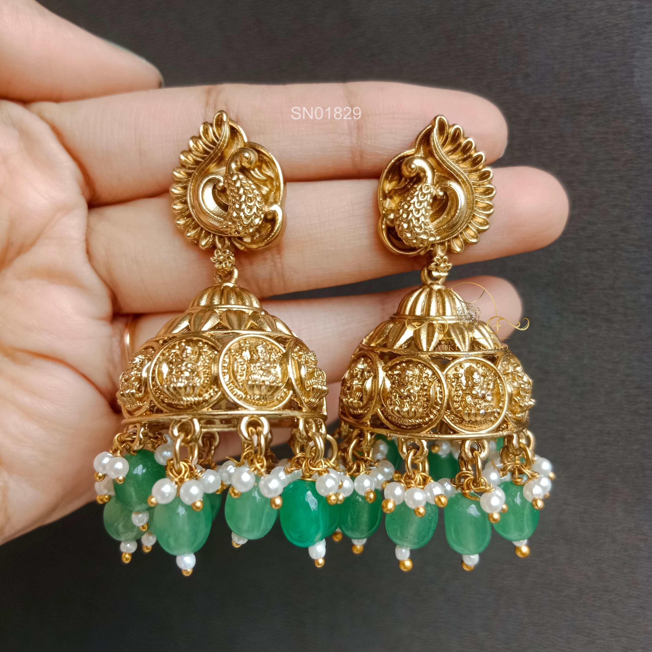 The Beautiful Dual Leaf Peacock Jhumki is a stunning pair of earrings that combines nature-inspired elements with traditional design. These jhumkis likely feature dual leaf motifs along with peacock-inspired detailing.