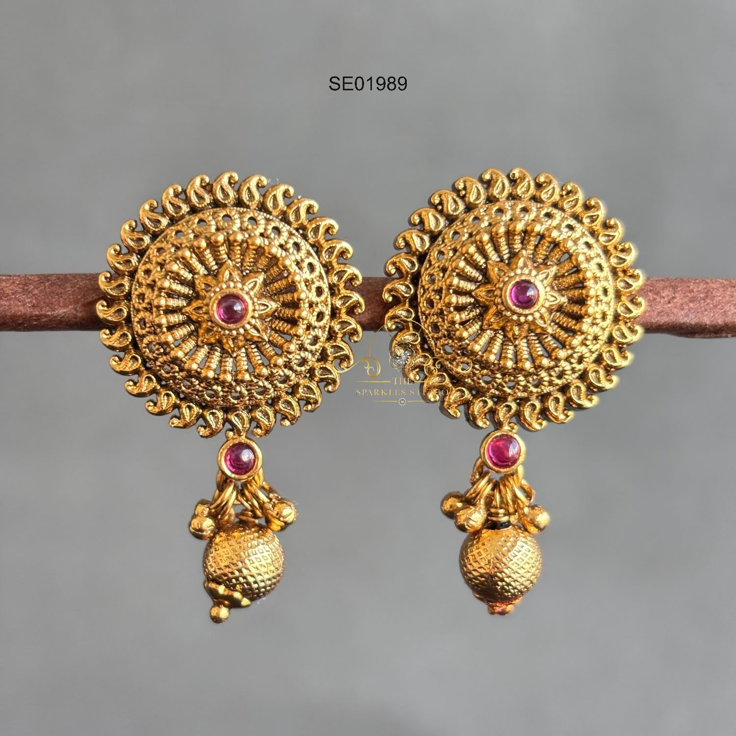 Antique stud with gold bead drop featuring classic temple detailing, rich antique finish, and elegant gold bead accents—perfect for festive wear, weddings, and everyday traditional styling.