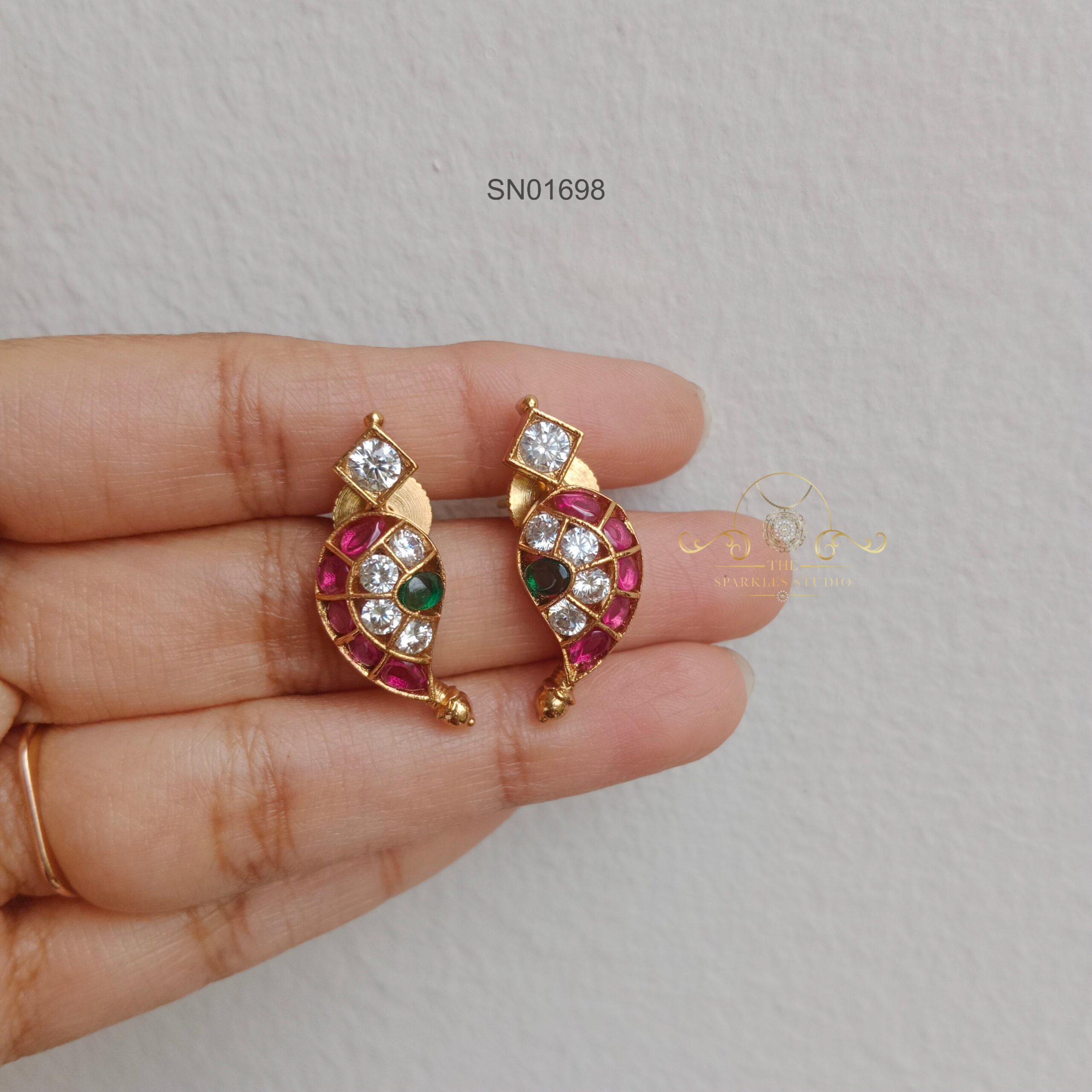 Kundan Chandbali Earrings embody timeless elegance with crescent-shaped designs adorned in Kundan and enriched with colorful gemstones.