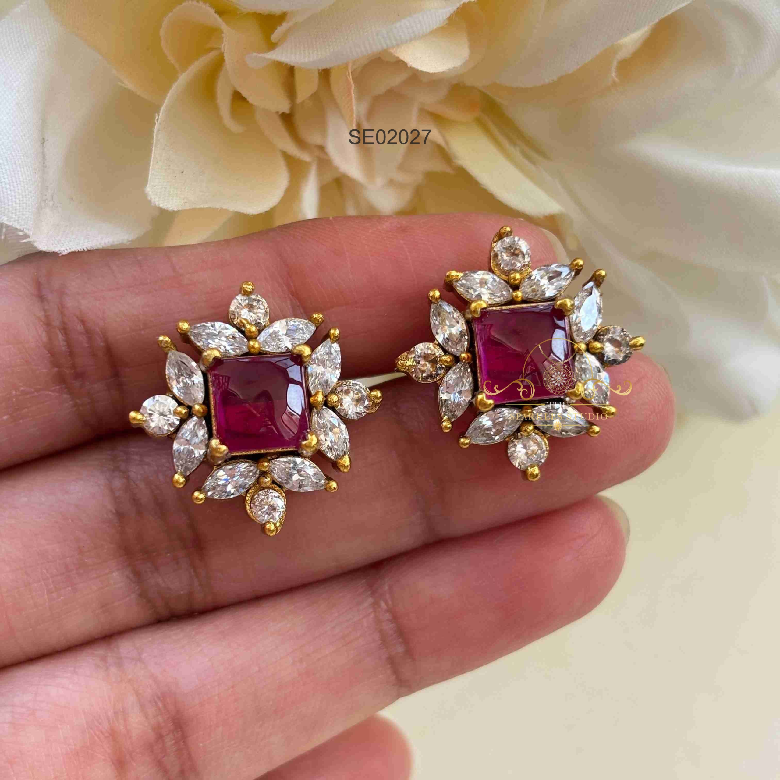 Colour Stone AD Studs feature vibrant coloured stones framed with sparkling American diamonds. Compact yet eye-catching, these elegant studs add a pop of colour and refined shine to festive, party, and everyday looks.
