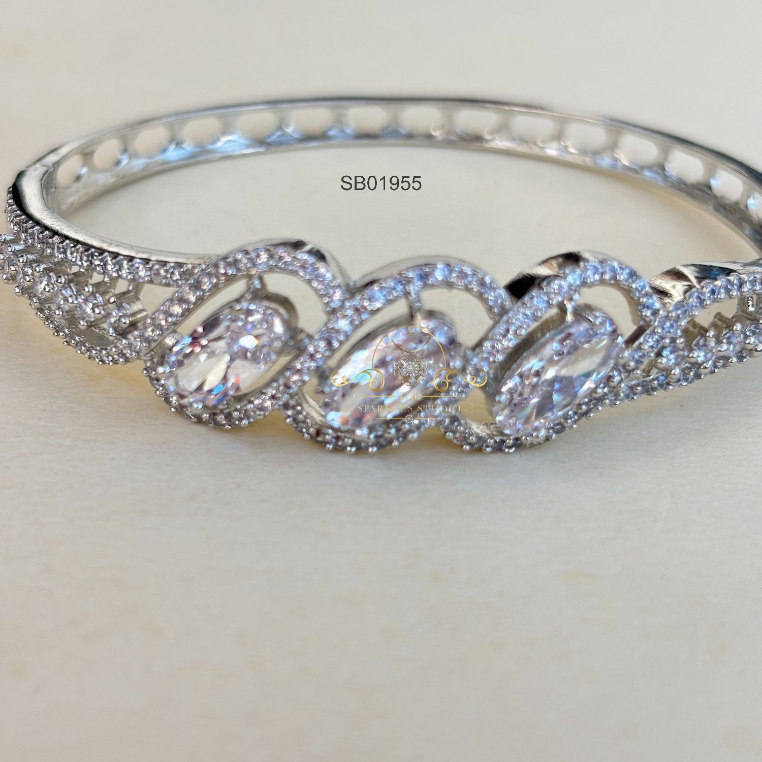 Dazzling AD Bracelet – A radiant bracelet embellished with sparkling AD stones, offering a luxurious yet lightweight feel. Perfect for festive outfits, party looks, and adding instant glamour to everyday elegance.
