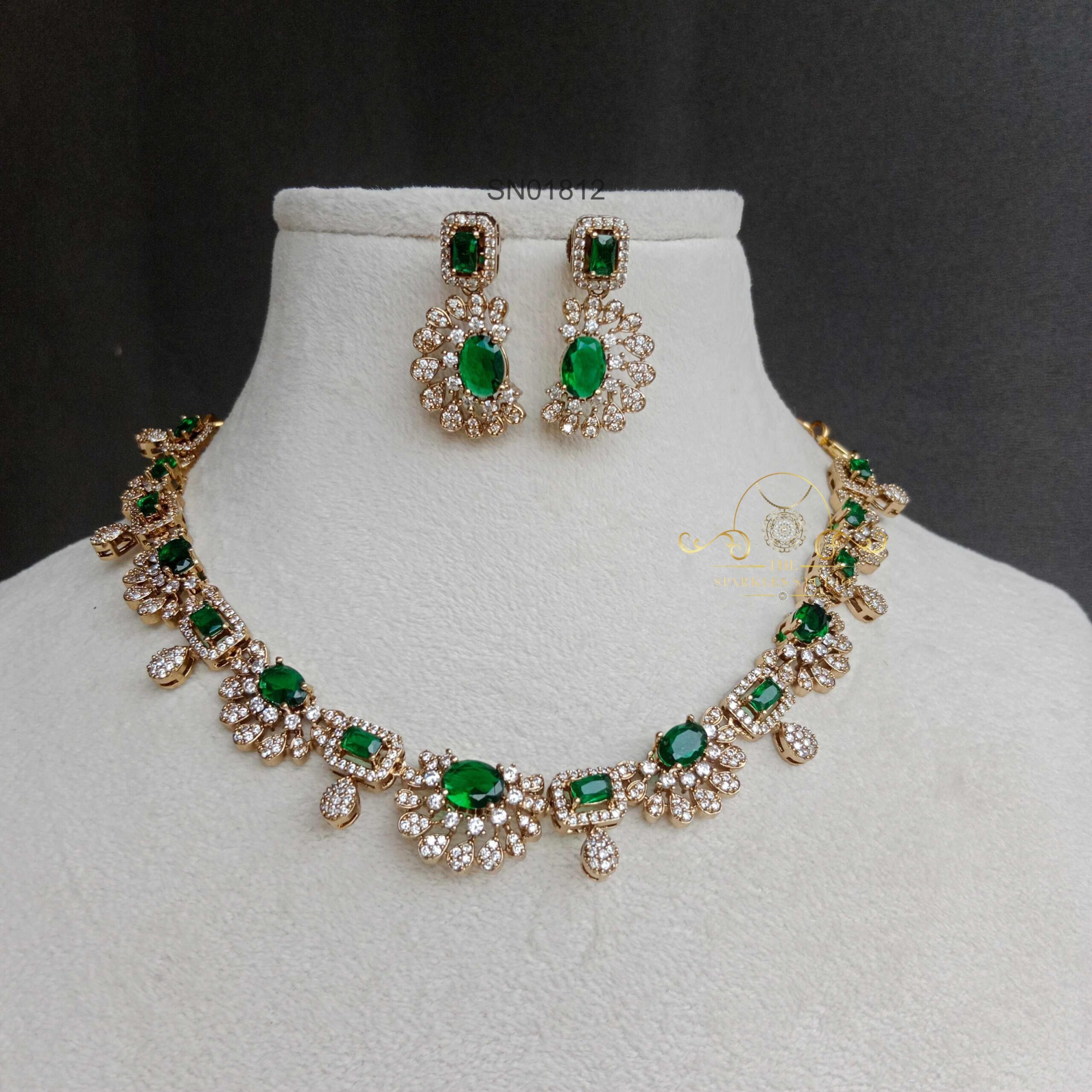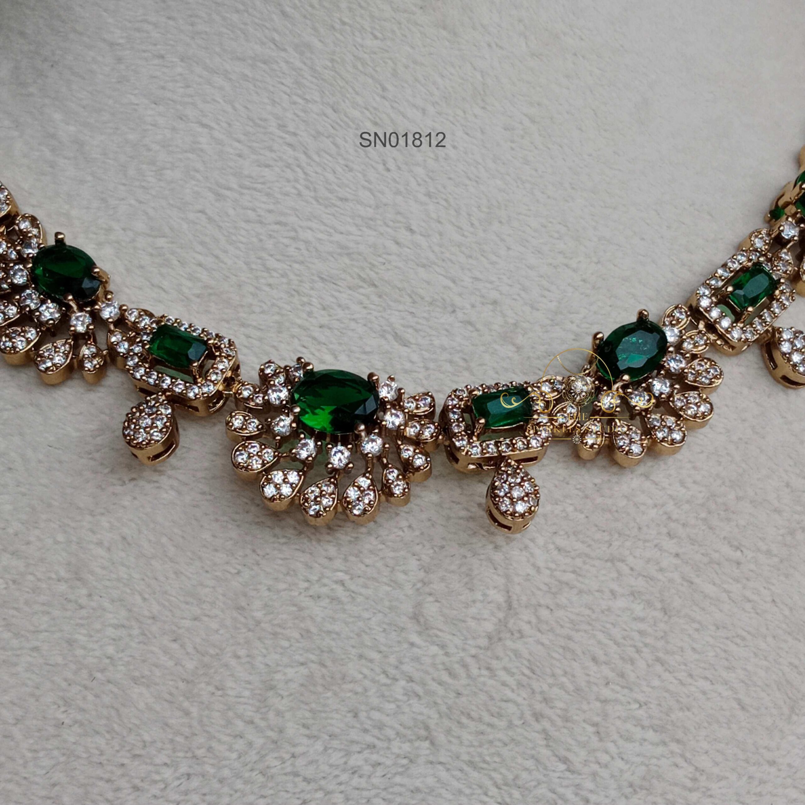 Stunning Emerald and AD Necklace featuring a blend of vibrant emerald stones and sparkling AD stones in an intricate design. Perfect for weddings and festive occasions, adding elegance and regal charm to traditional attire.