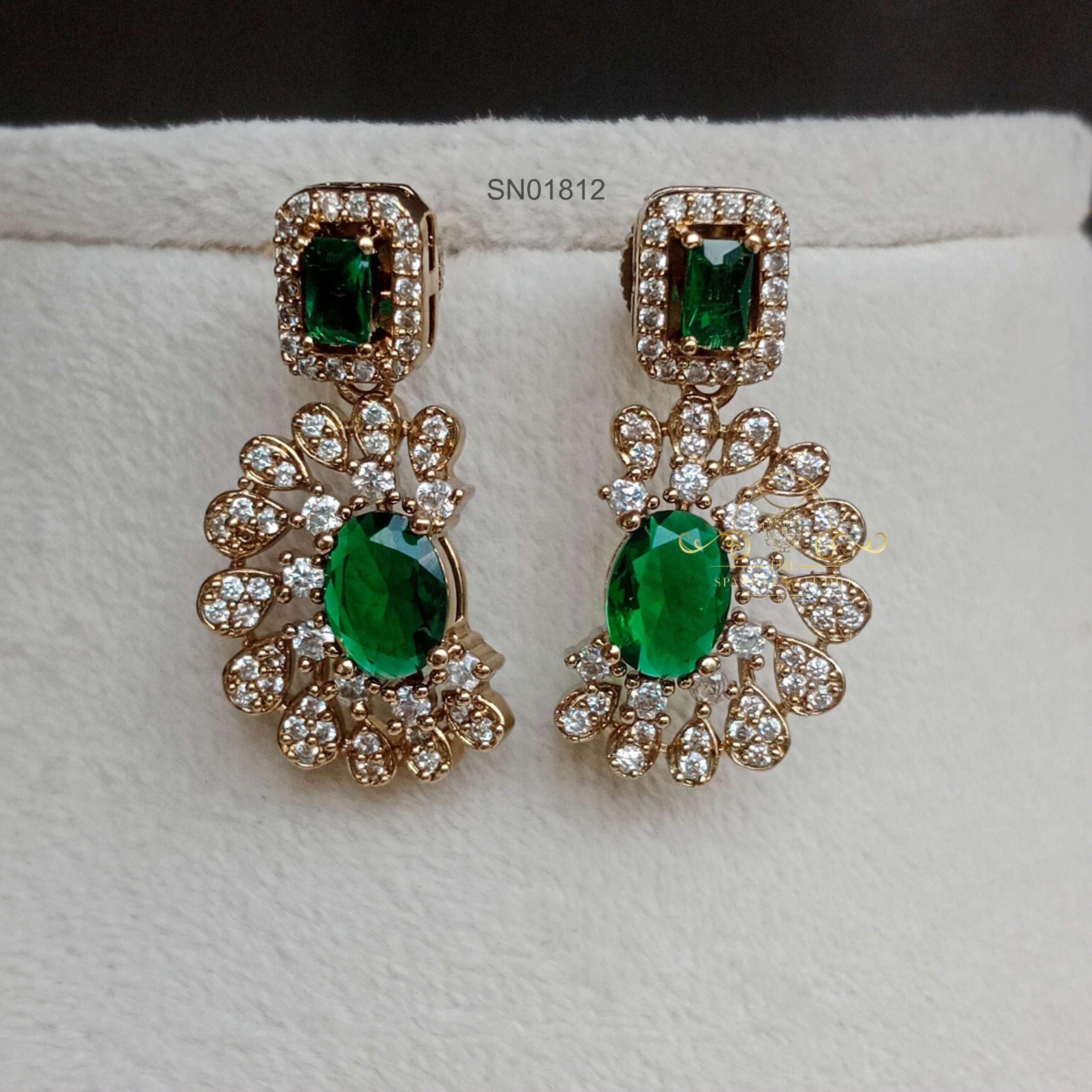 Peacock Earrings with Pearl/Green Bead Drops are a delightful and nature-inspired accessory. These earrings likely feature a peacock design, possibly crafted with intricate details, and adorned with either pearls or green beads as drops.