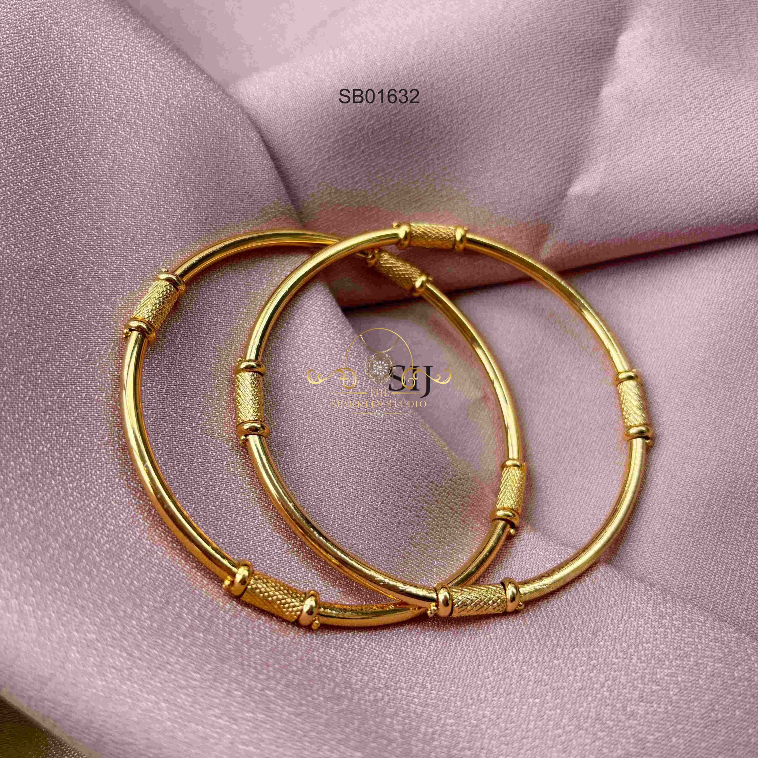 The simple and elegant plain bangles are a timeless accessory that exudes understated sophistication. Crafted without intricate embellishments, these bangles showcase a minimalist design, allowing for versatility in styling.