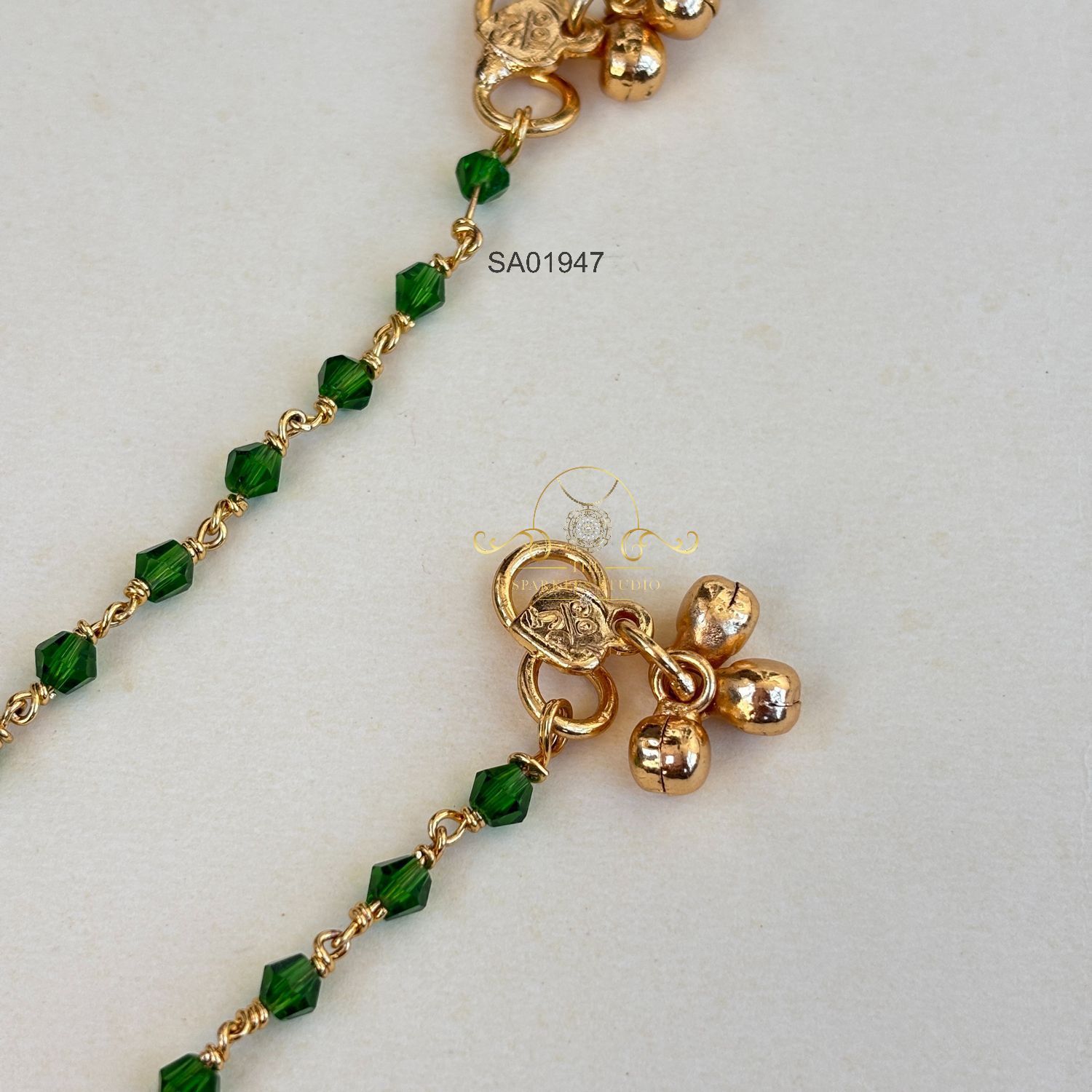 Green Bead Anklets – Delicate anklets adorned with vibrant green beads, adding a fresh pop of color and graceful charm. Perfect for festive looks, ethnic outfits, and everyday elegance with a youthful twist.