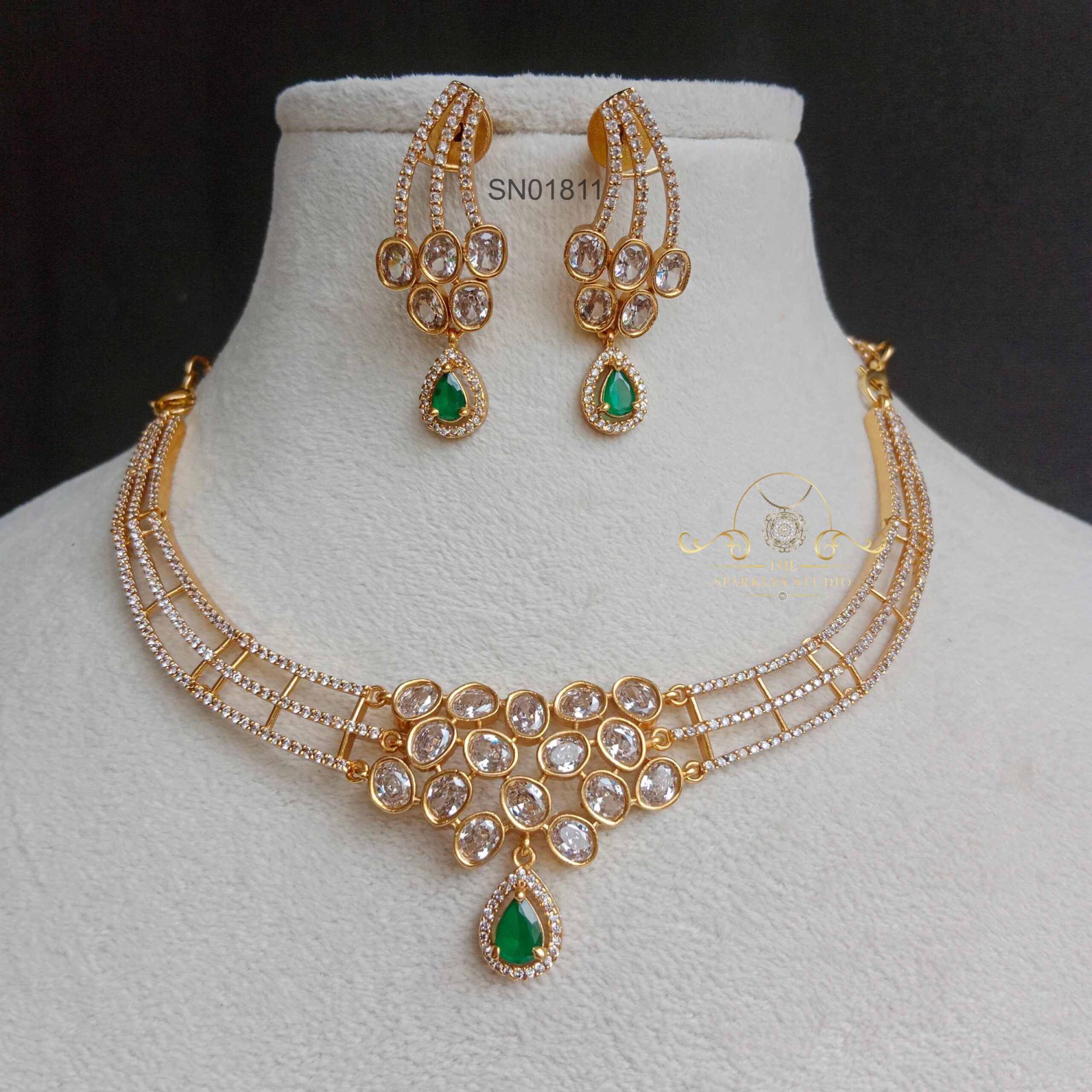 The Dazzling Oval and Flower Neckset is an eye-catching and intricate piece of jewelry. This neckset likely features a combination of oval-shaped gemstones, possibly diamonds or colored stones, and floral motifs.