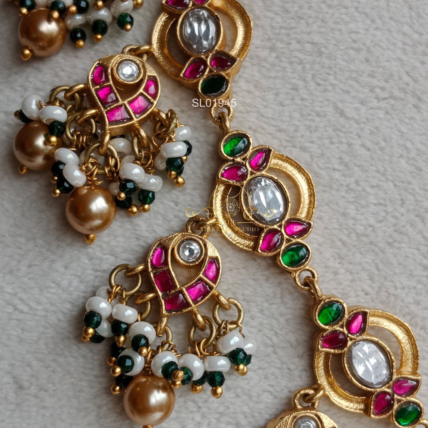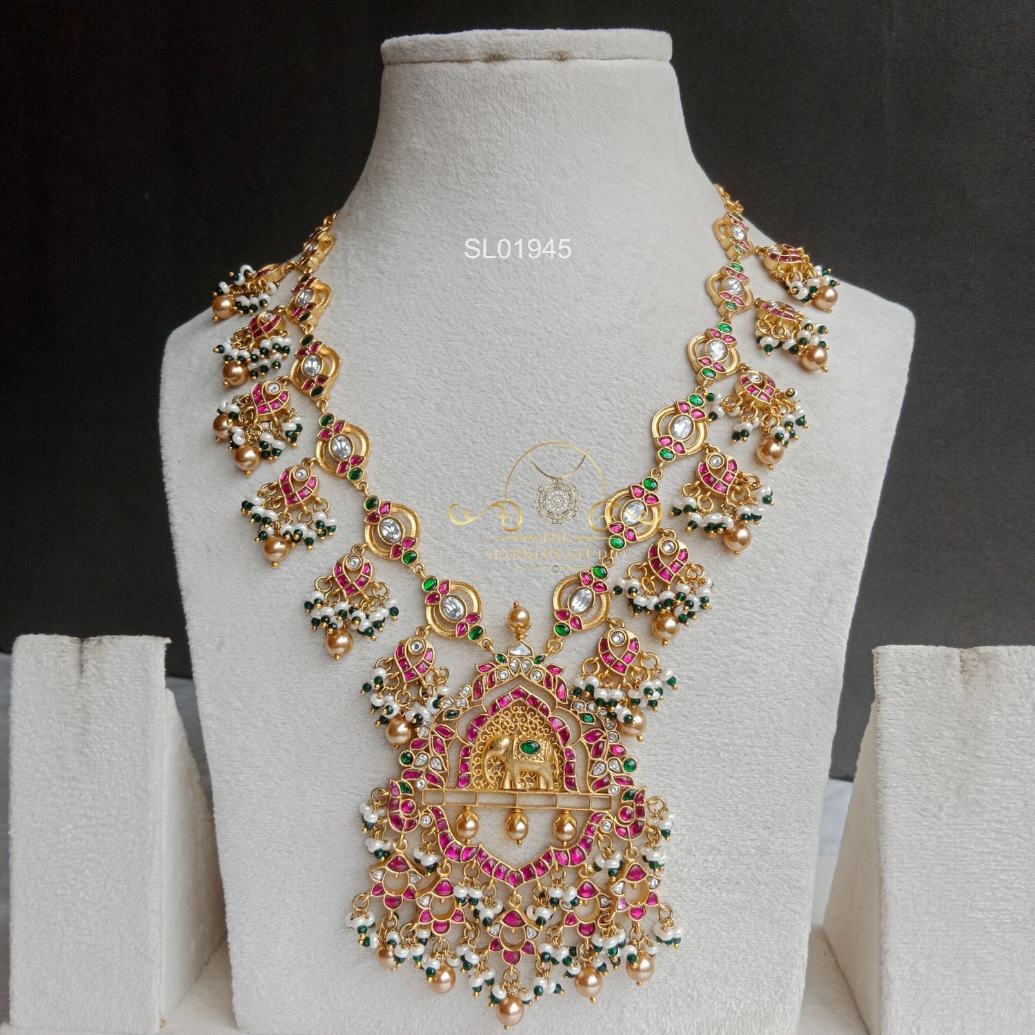 A regal masterpiece featuring intricate elephant motifs, classic jadau detailing, and traditional guttapusalu pearls. Perfect for brides seeking a grand, heritage-inspired statement with timeless South Indian elegance.