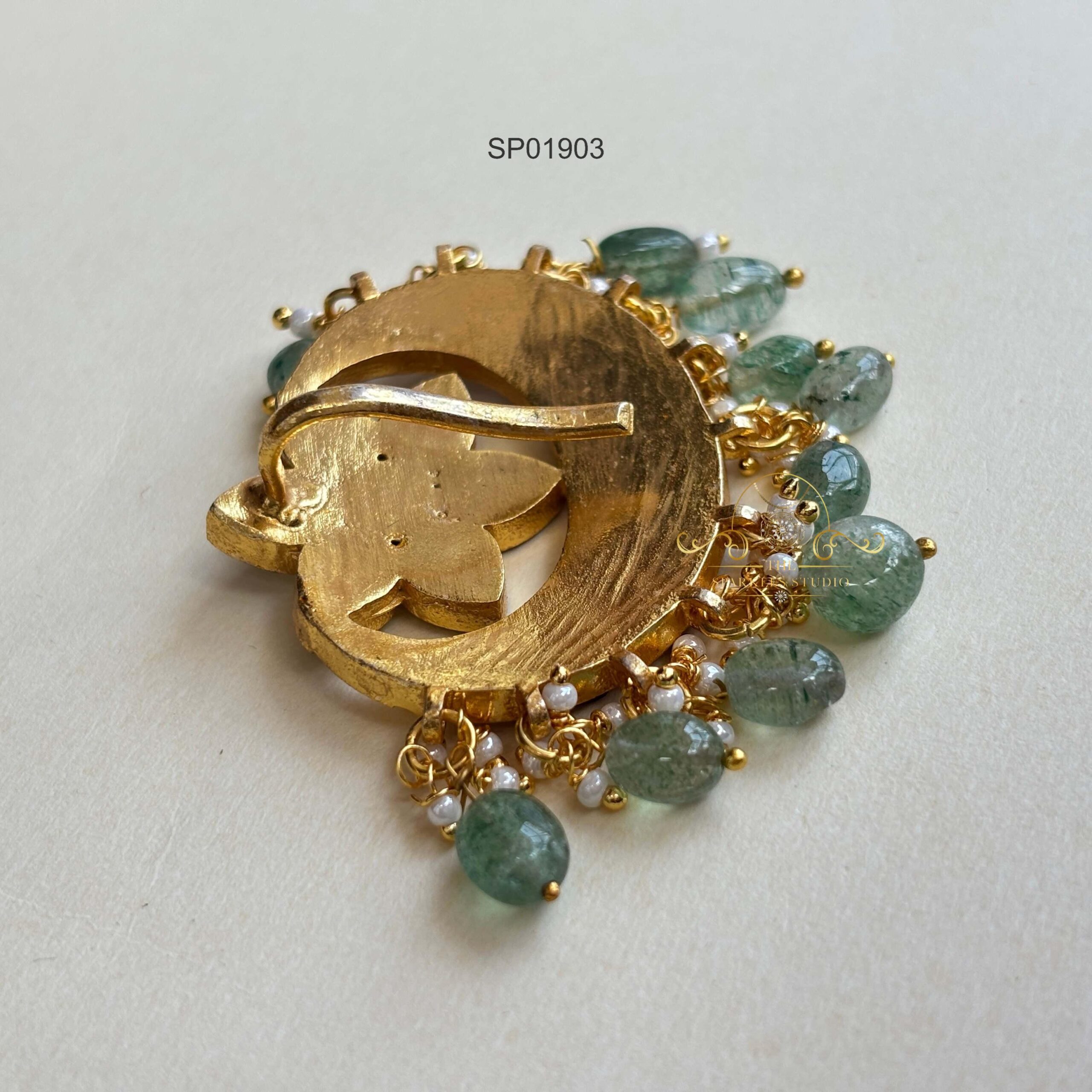 Jadau Moon and Flower Pendant with intricate kundan detailing and artistic dual motif design. Blending celestial and floral elegance, it’s perfect for festive wear, bridal styling, and traditional statement looks.