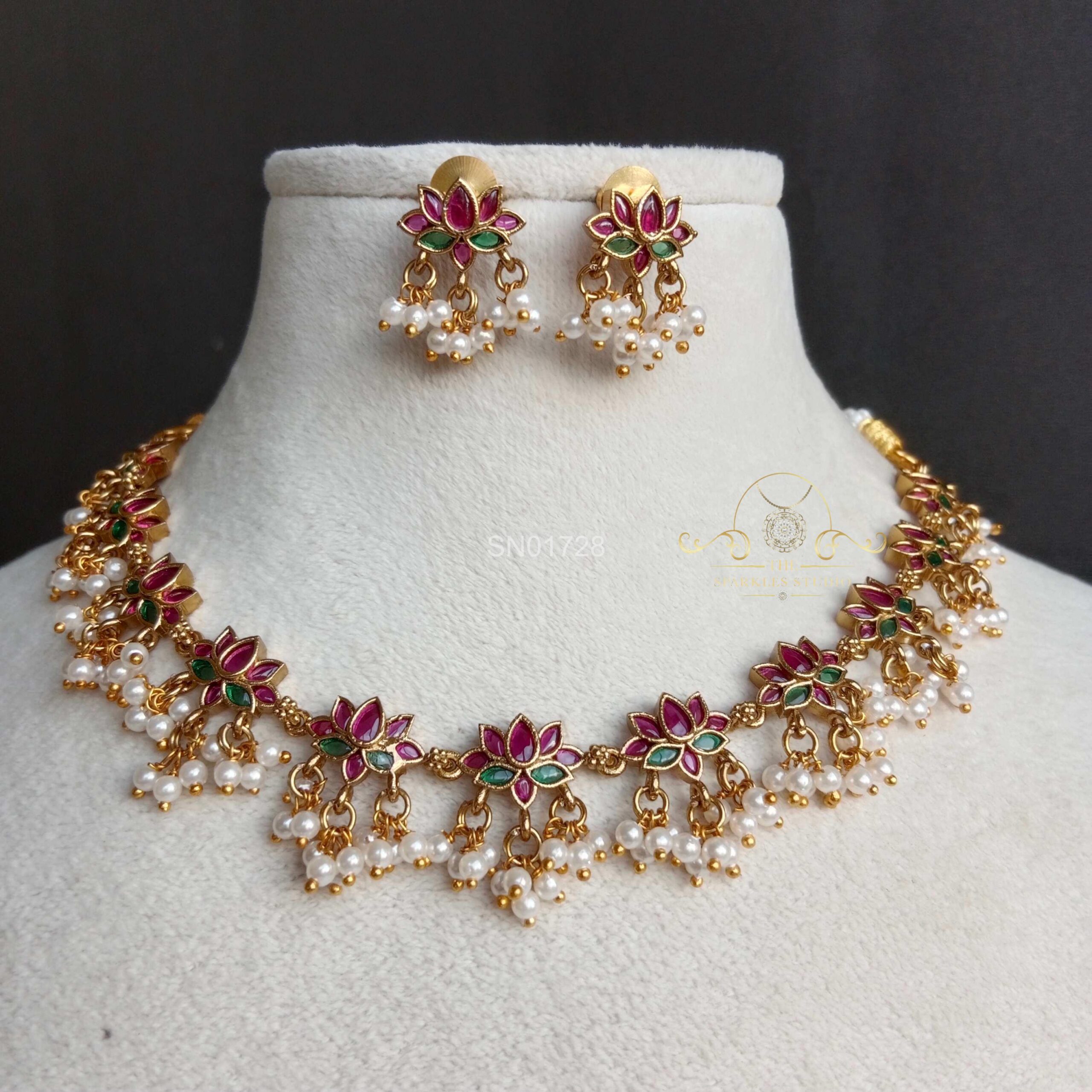 The Dazzling Oval and Flower Neckset is an eye-catching and intricate piece of jewelry. This neckset likely features a combination of oval-shaped gemstones, possibly diamonds or colored stones, and floral motifs.
