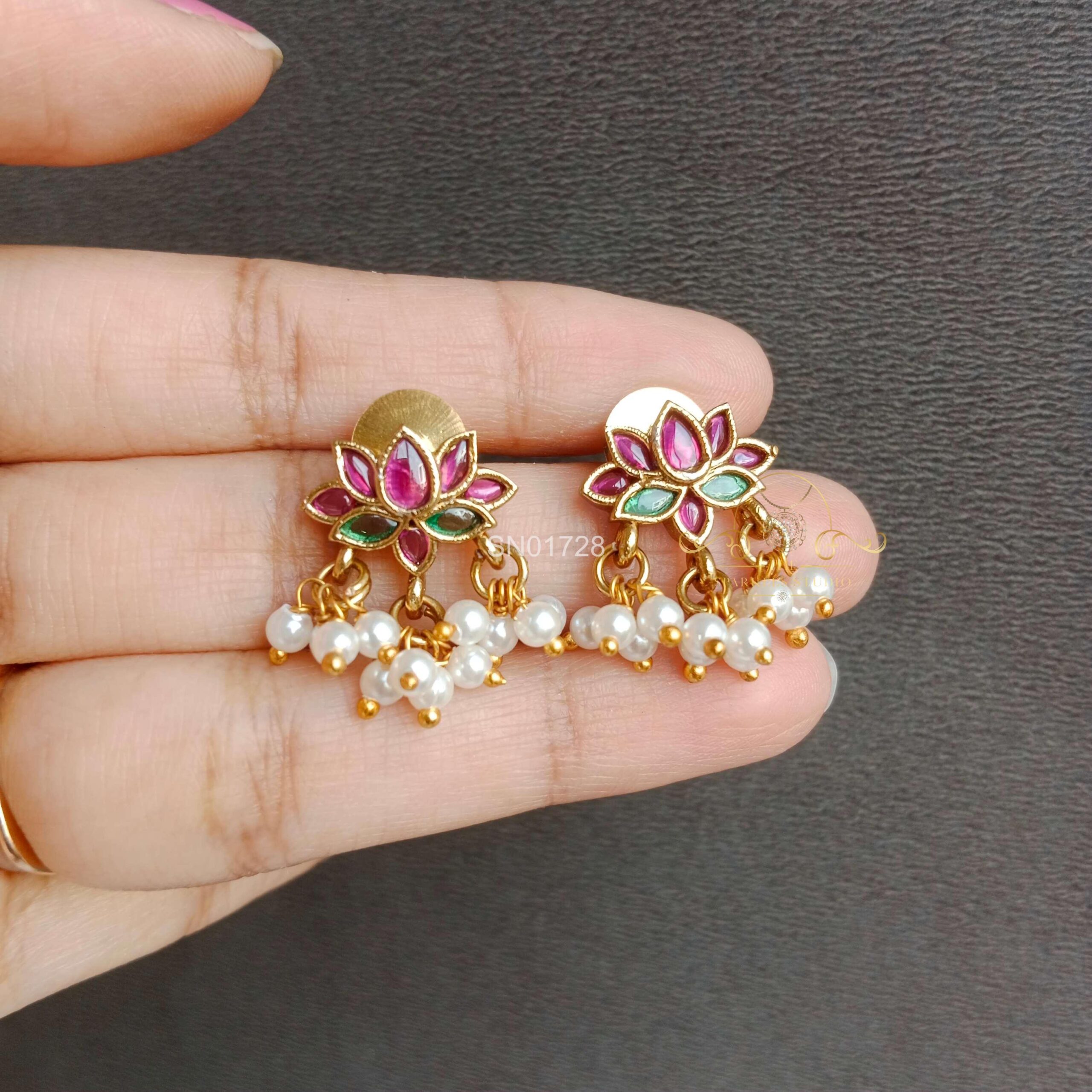 Peacock Earrings with Pearl/Green Bead Drops are a delightful and nature-inspired accessory. These earrings likely feature a peacock design, possibly crafted with intricate details, and adorned with either pearls or green beads as drops.