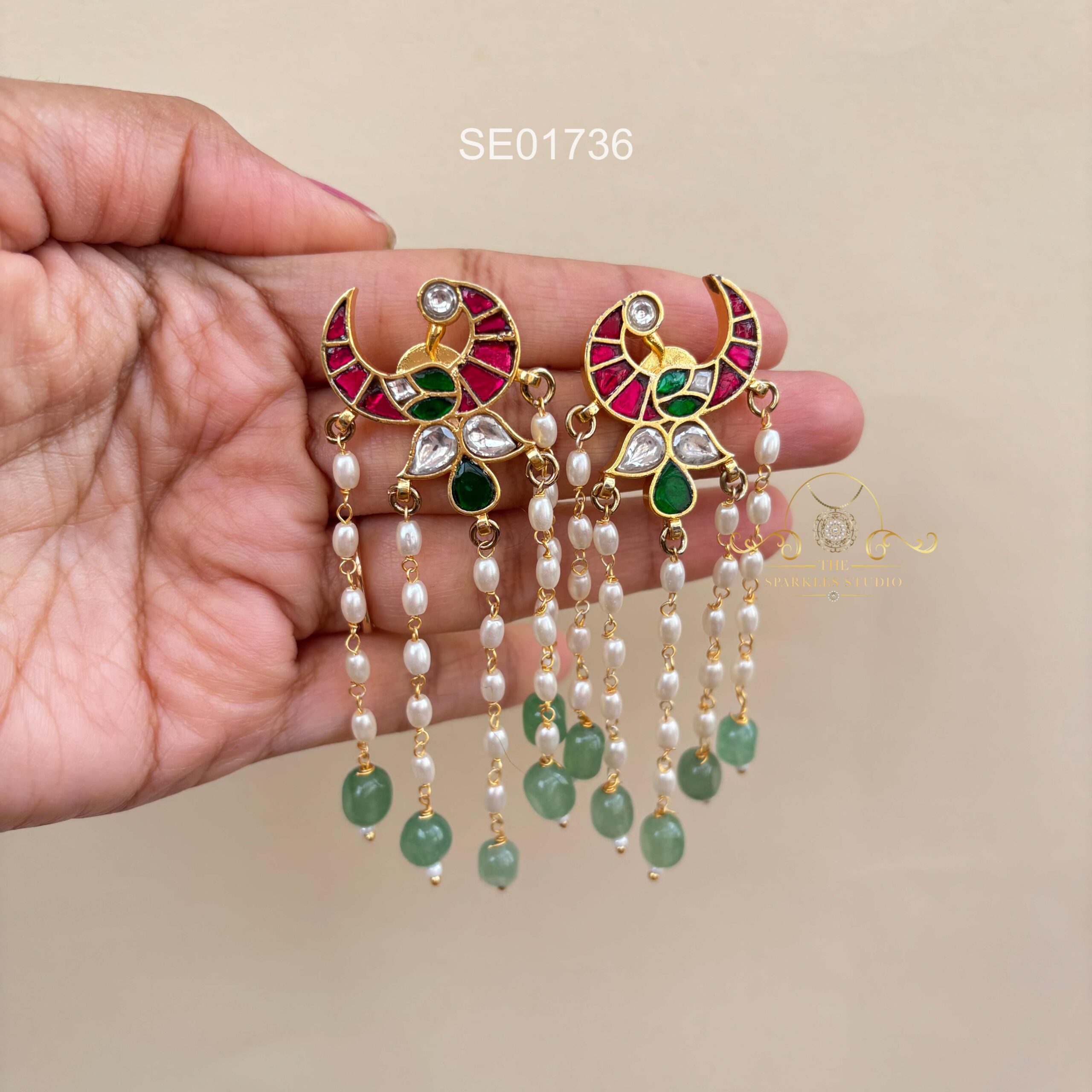 Peacock Jadau Stud with Pearl Drops
