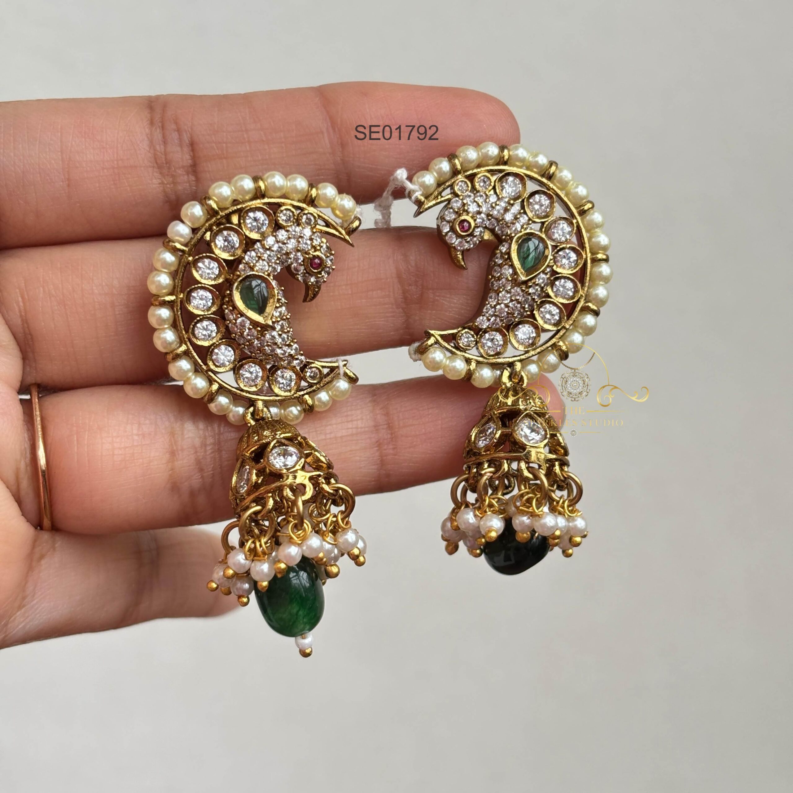 Add a touch of elegance with these Peacock Moon Pearl Earrings, featuring intricate peacock-inspired design and lustrous moon pearls. Ideal for festive occasions, weddings, or enhancing your traditional and contemporary looks.