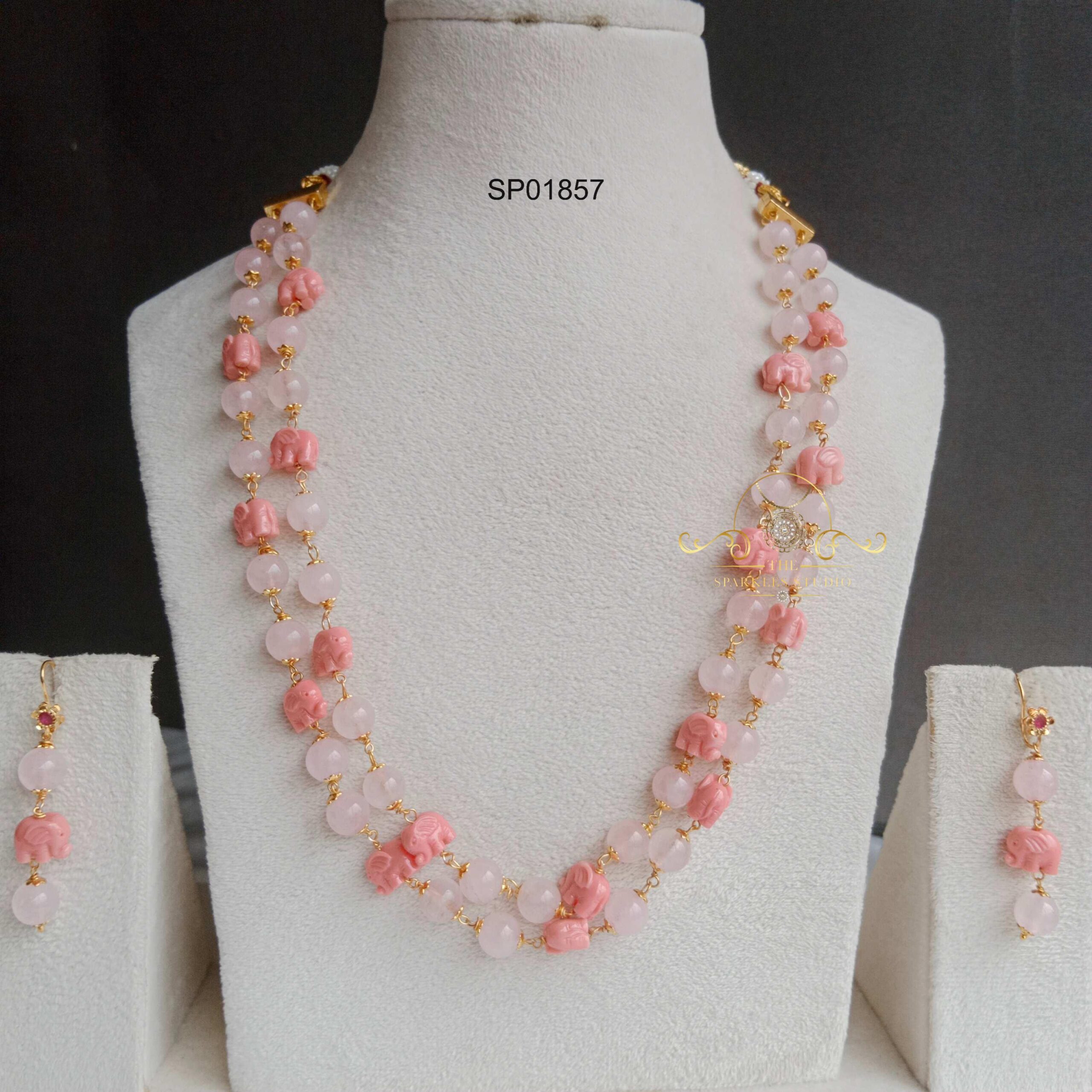 Pink bead with elephant bead mala set featuring charming handcrafted details and playful traditional accents. Perfect for ethnic outfits, festive occasions, and casual styling, adding a cute, cultural, and colorful touch to your look.