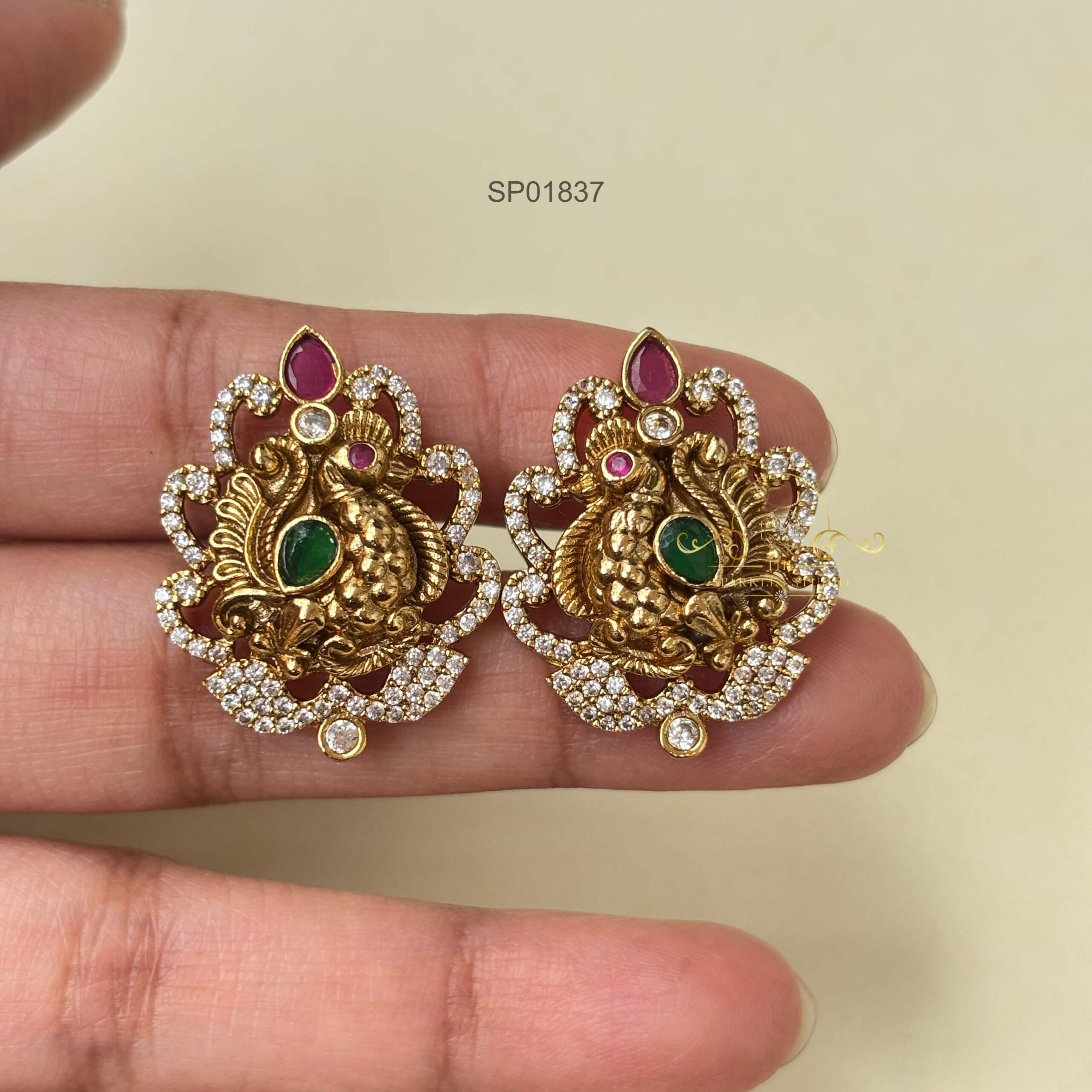 Peacock Earrings with Pearl/Green Bead Drops are a delightful and nature-inspired accessory. These earrings likely feature a peacock design, possibly crafted with intricate details, and adorned with either pearls or green beads as drops.