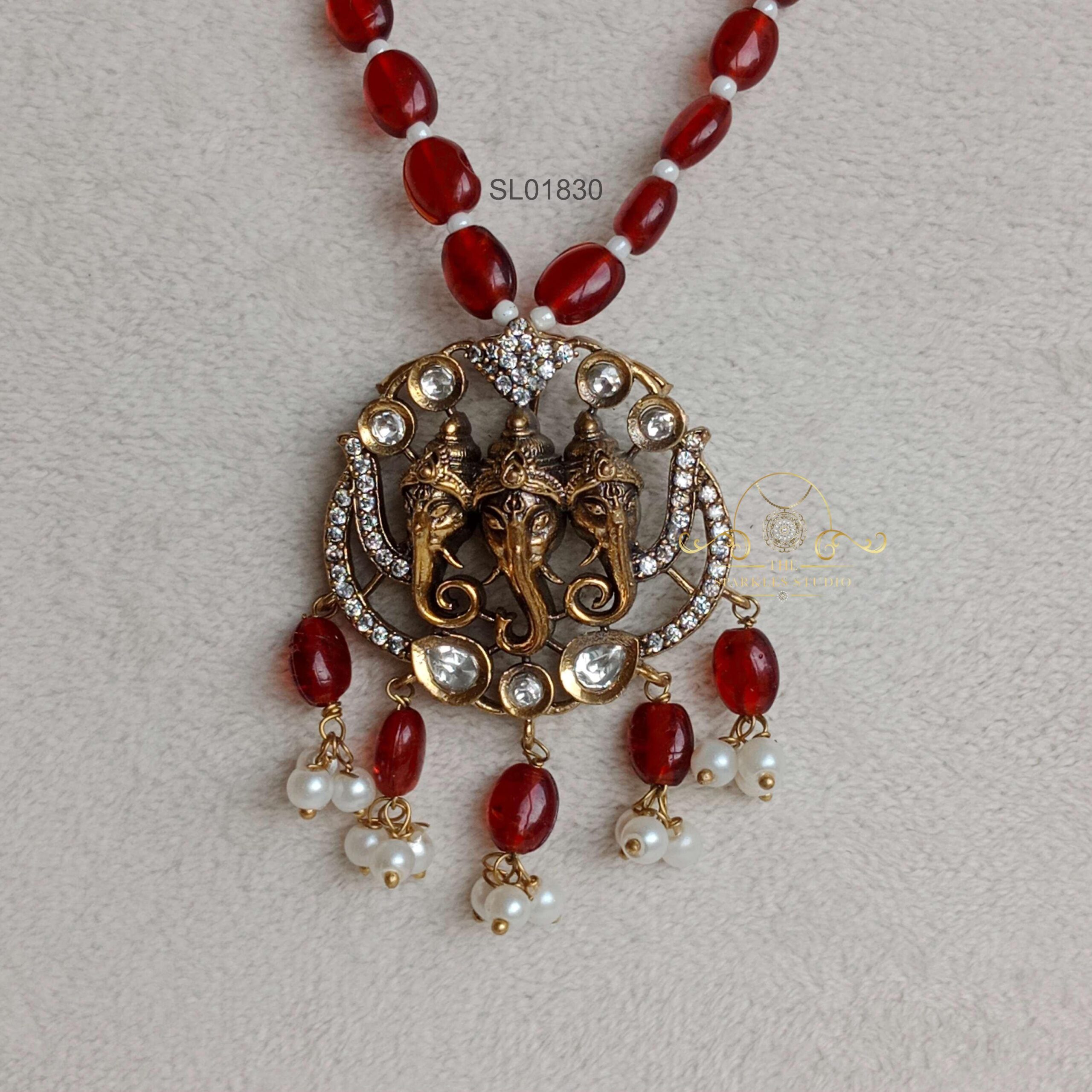 Red Bead Ganesha Pendant Long Haram