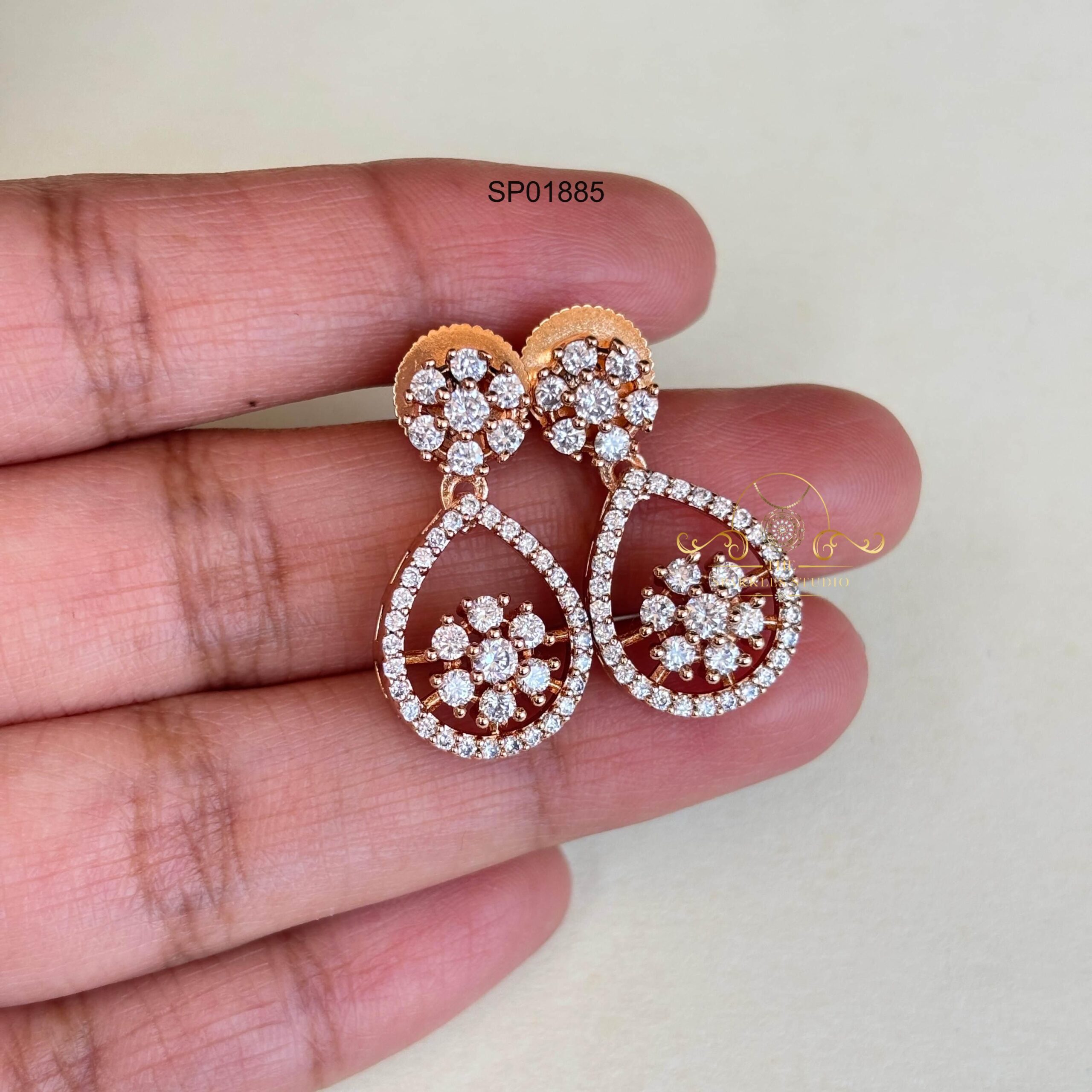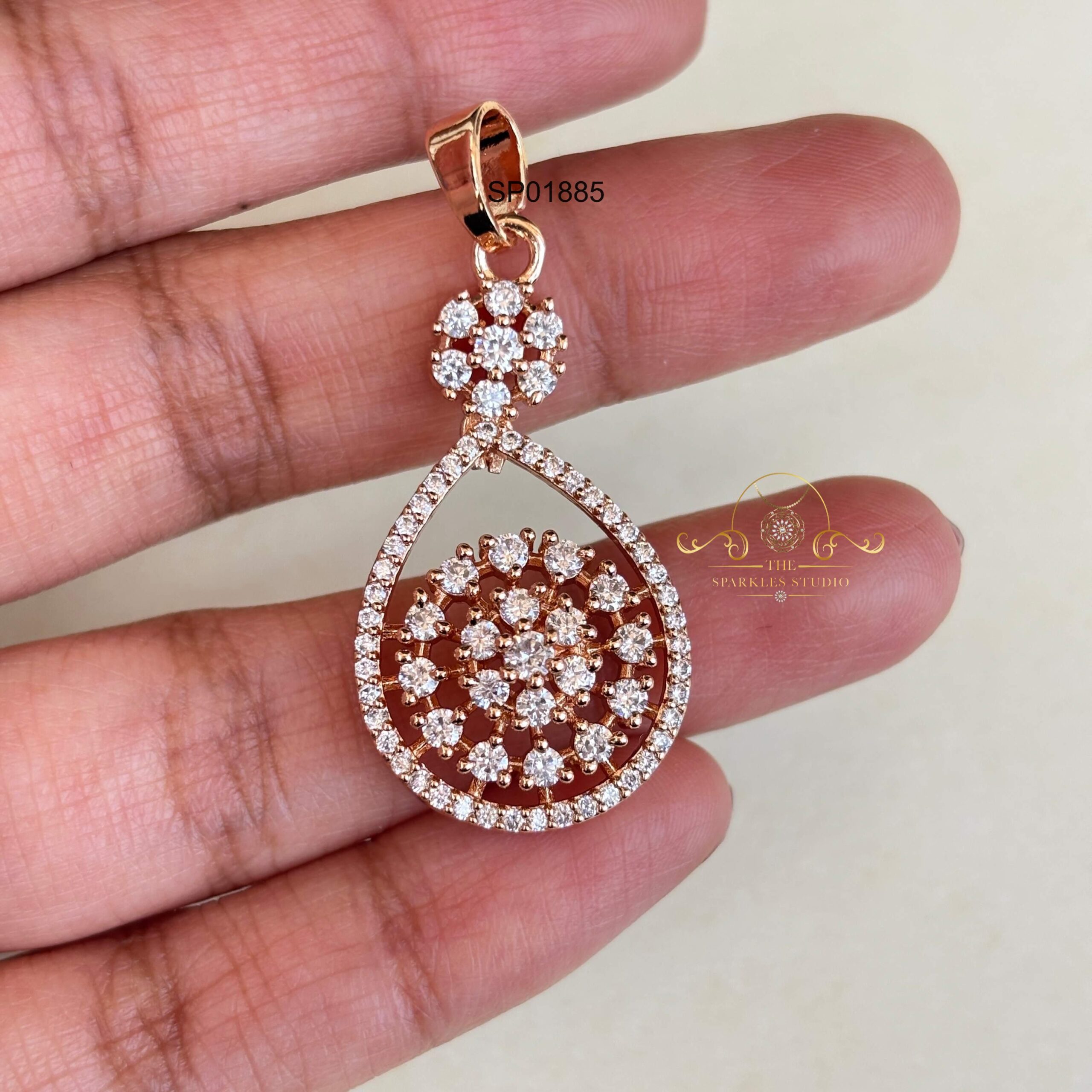 Rosegold AD pendant set featuring sparkling white stones set in a warm rosegold finish. Perfect for daily wear and festive outfits, adding soft glamour, modern elegance, and a chic feminine touch.