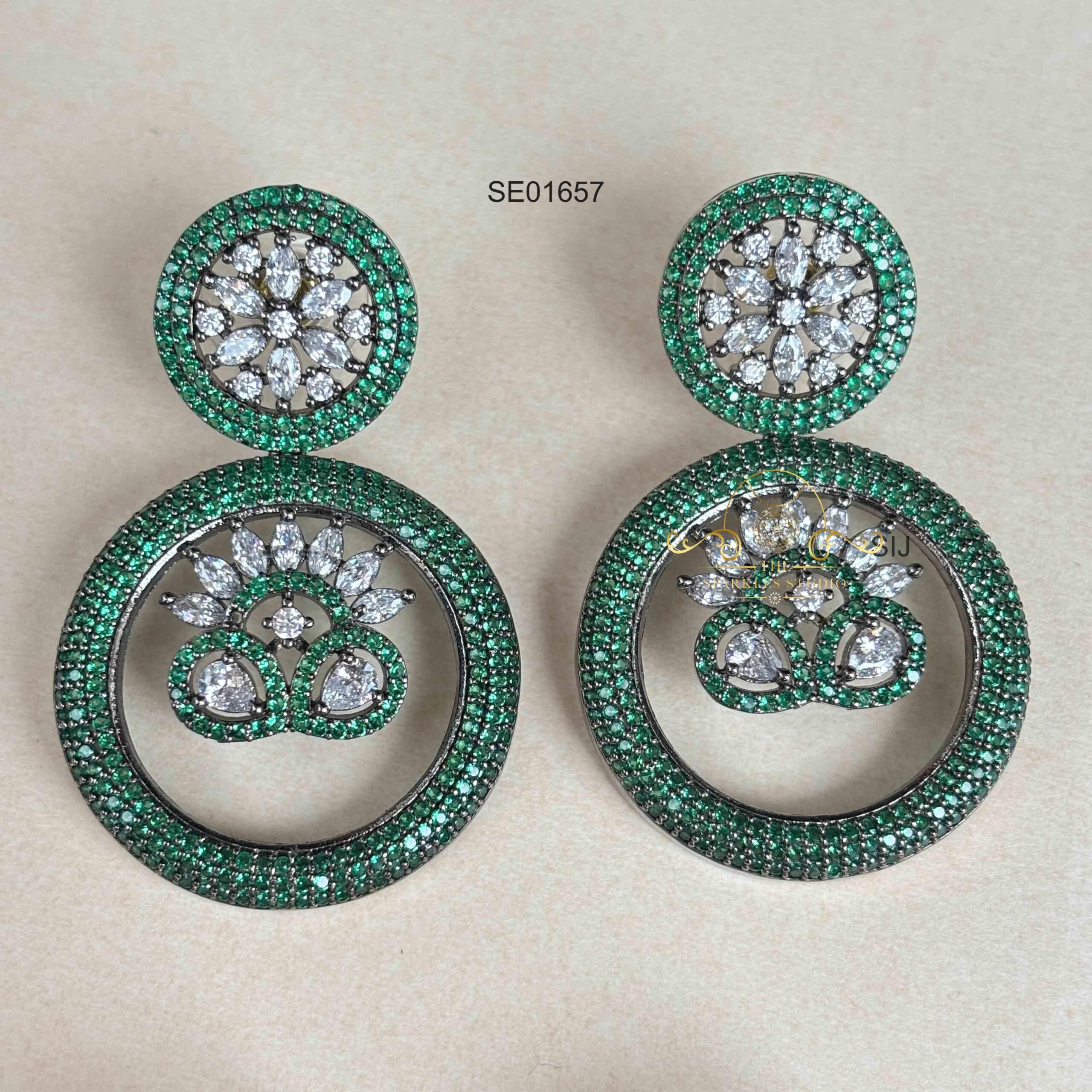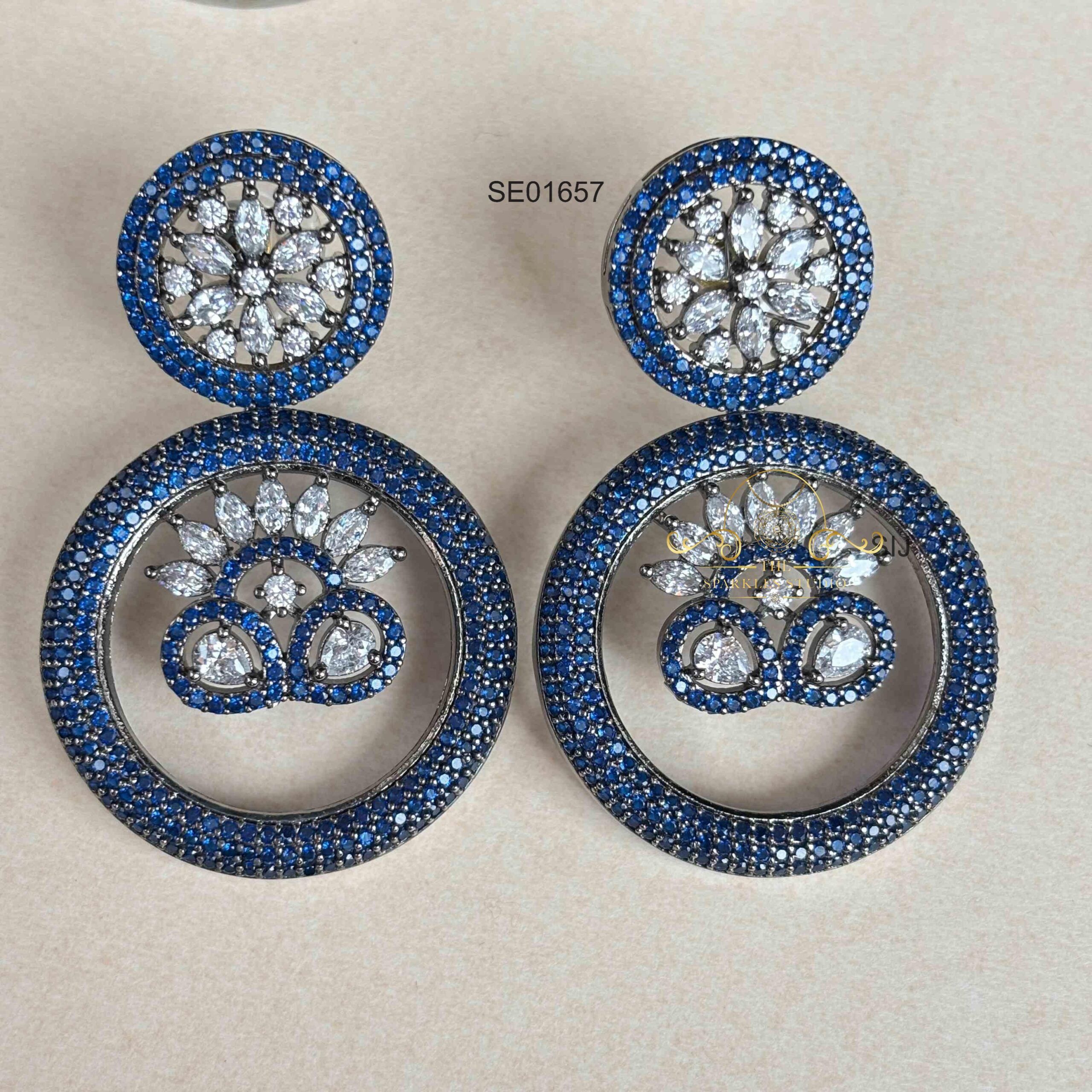 Unique AD Drop Earrings with Two Rounds Down are distinctive and stylish accessories. These earrings feature American Diamonds (AD) in a drop design, with two rounds hanging down, creating a unique and eye-catching look.