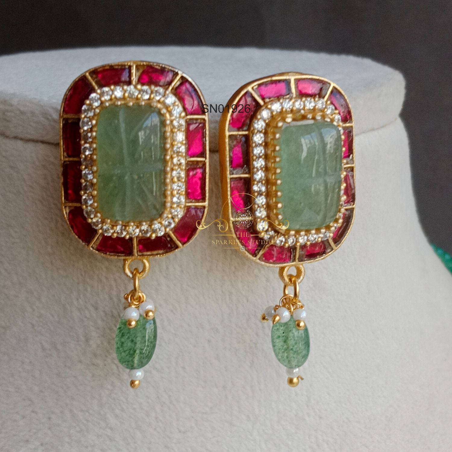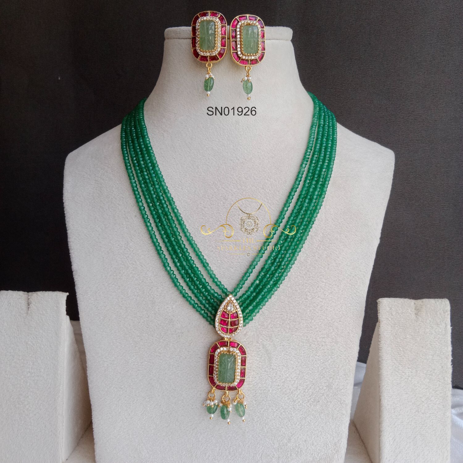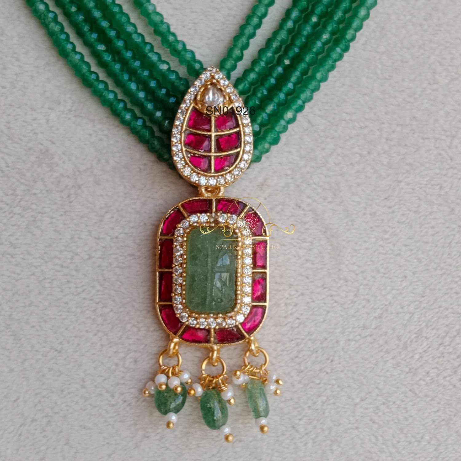 Royal Green Bead Jadau Pendant Neckset