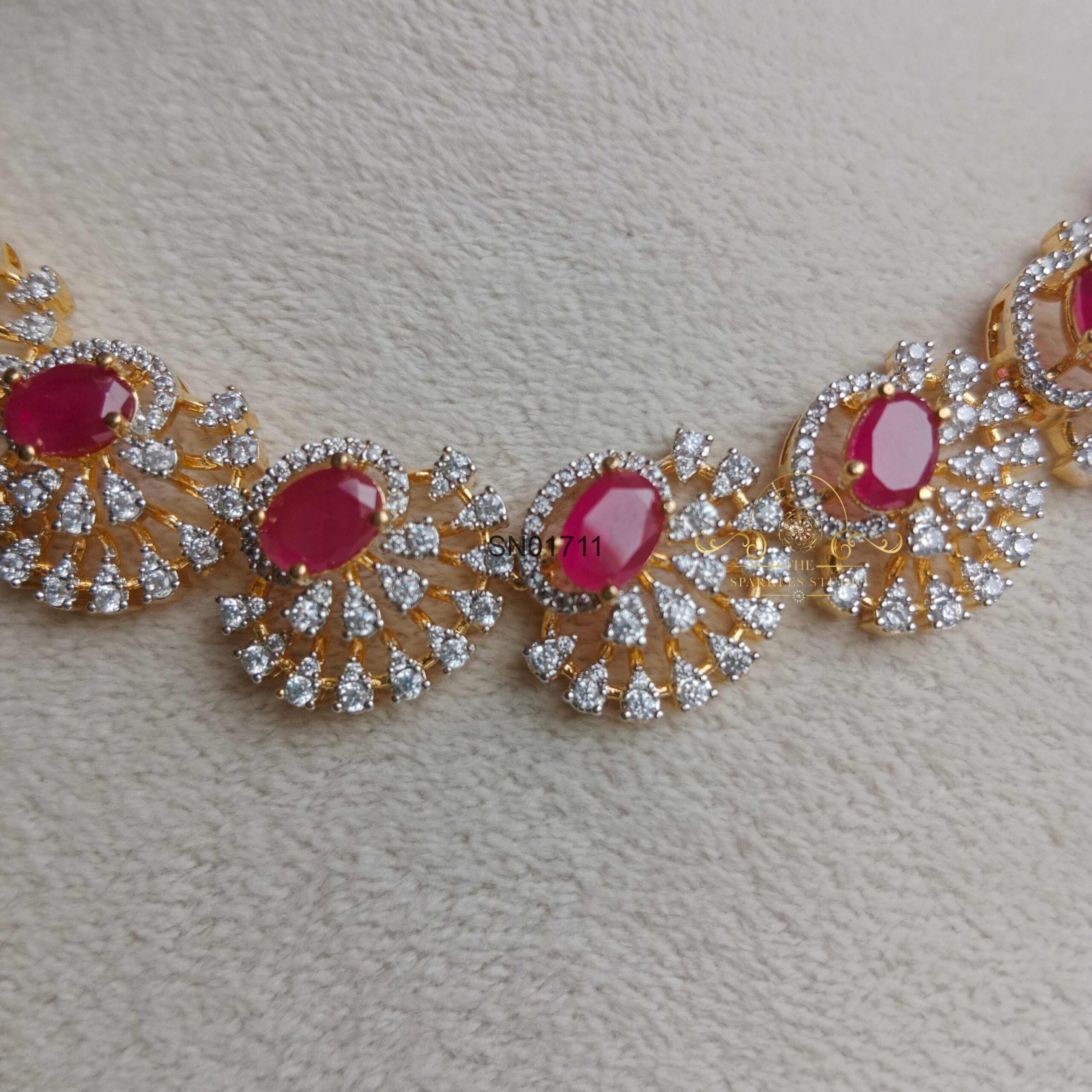 Ruby Half Flower AD Necklace Set
