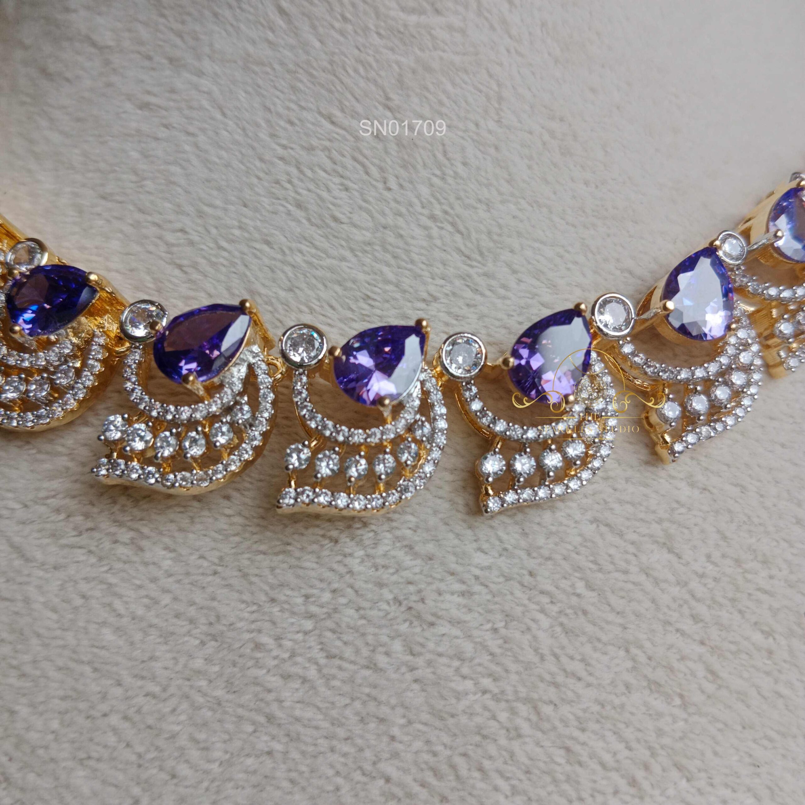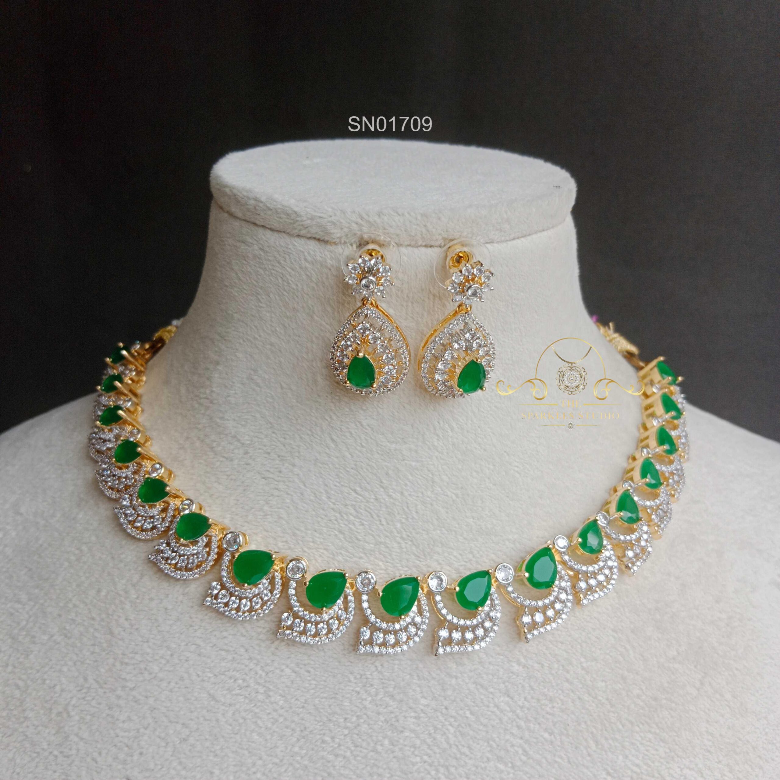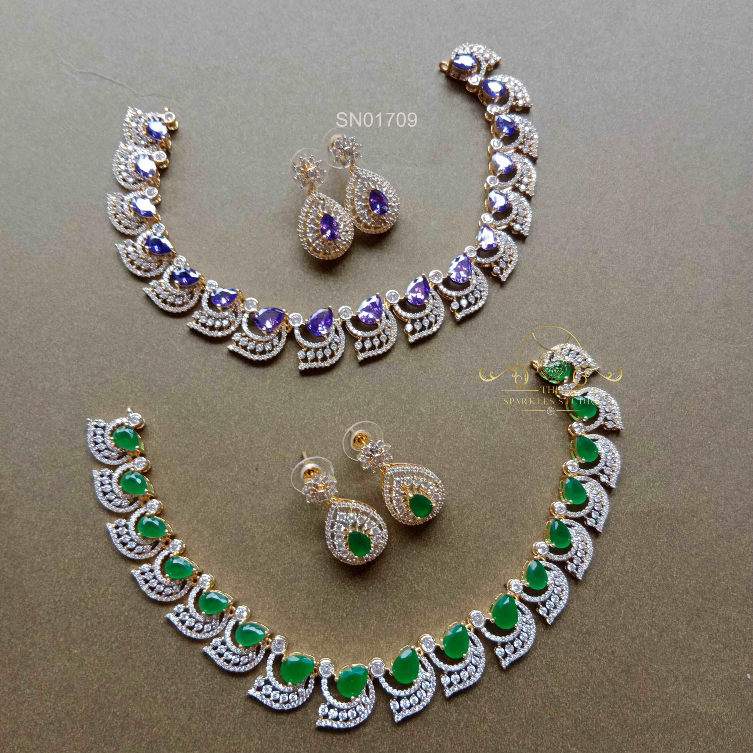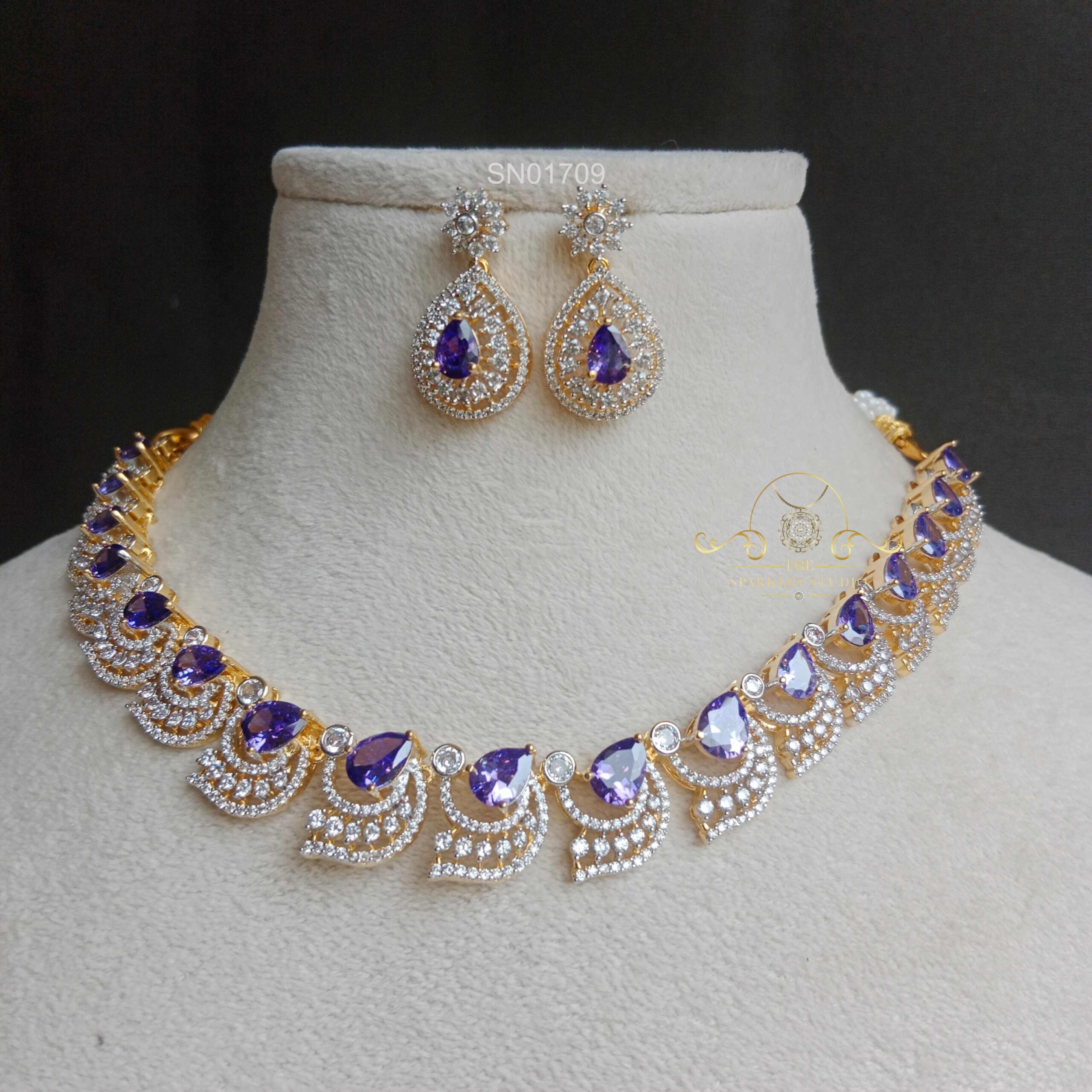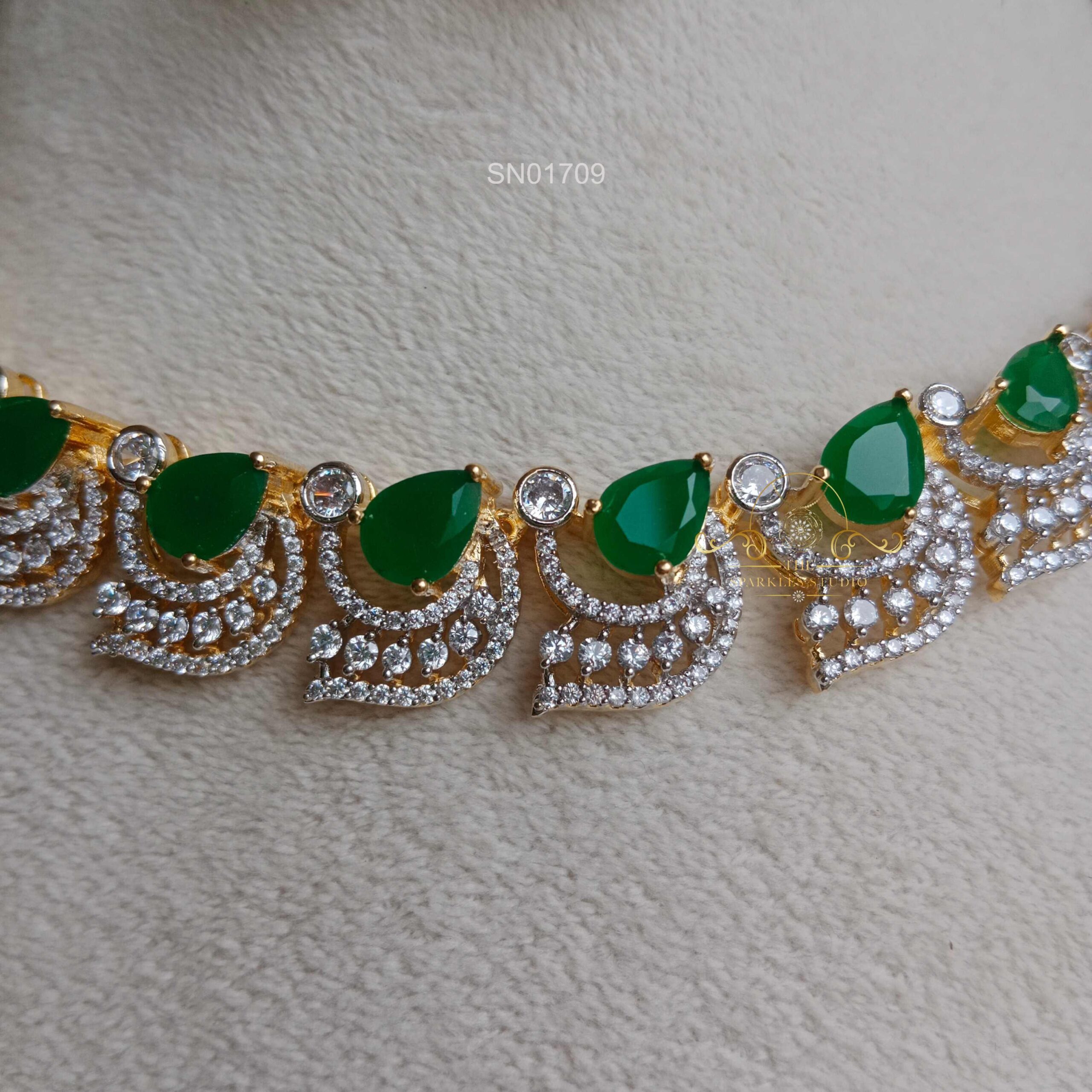 The Sanku AD Necklace Set dazzles with sparkling American Diamonds and elegant craftsmanship. Perfect for weddings and festive occasions, it beautifully complements traditional attire, adding timeless charm and sophistication to your look.