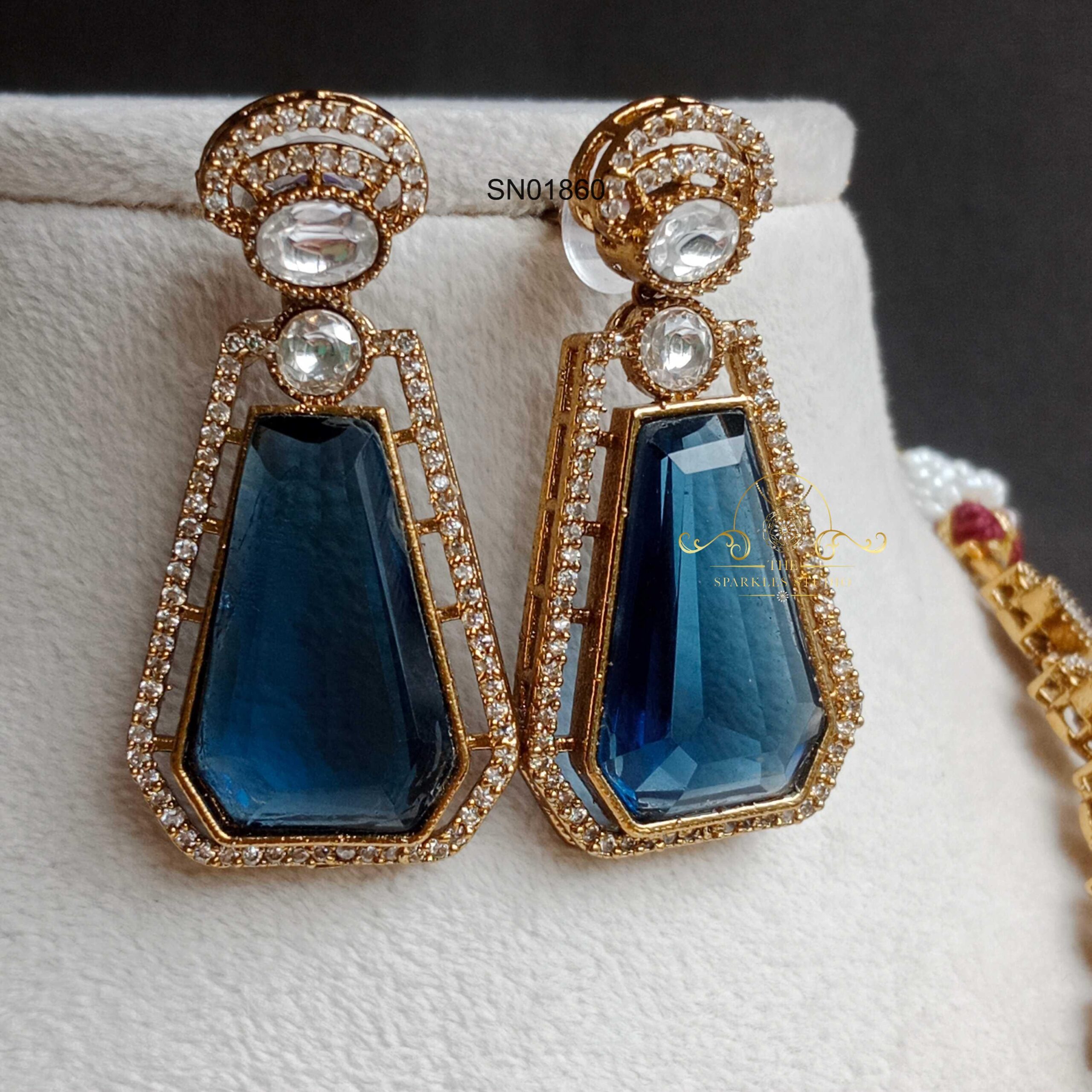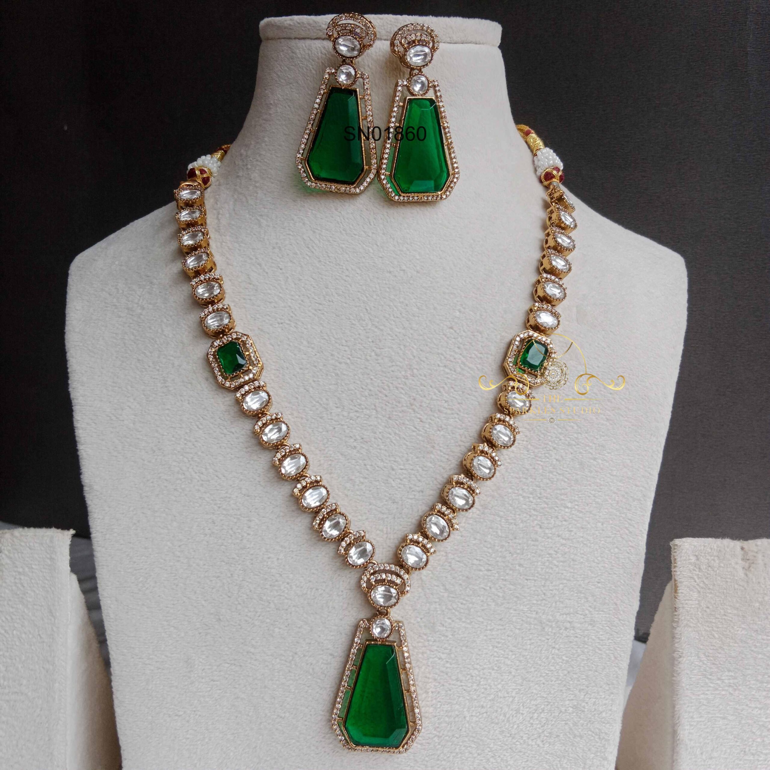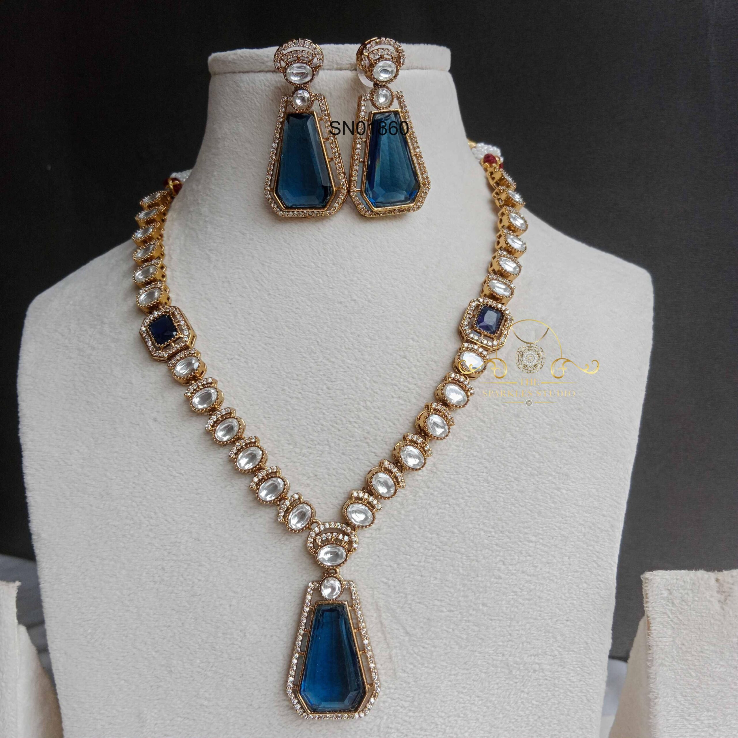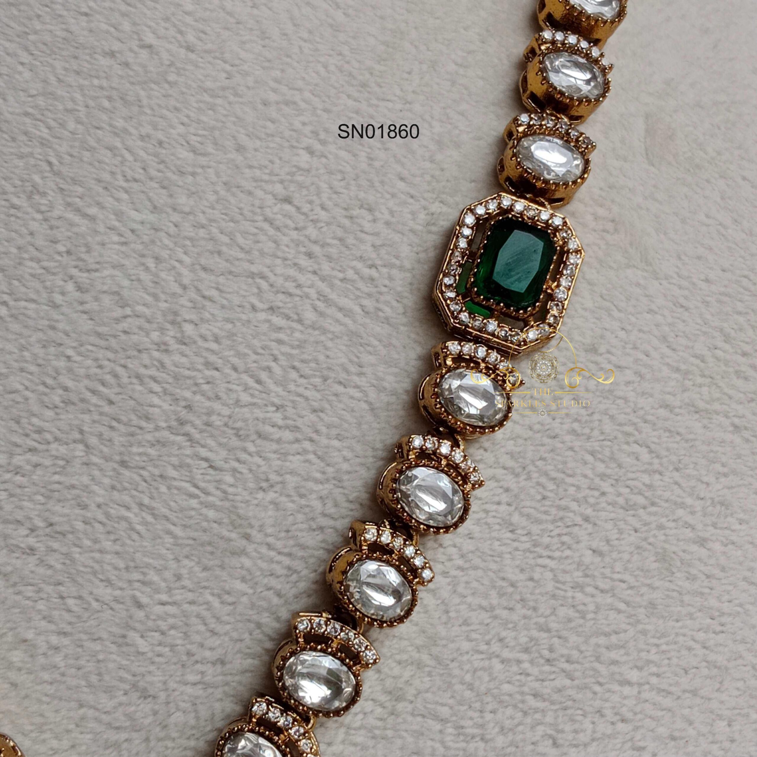 Sapphire/Emerald with moissanite necklace featuring rich gemstone tones and radiant diamond-like sparkle. Perfect for weddings, festive occasions, and grand traditional outfits, adding regal charm, refined elegance, and luxurious heritage beauty.