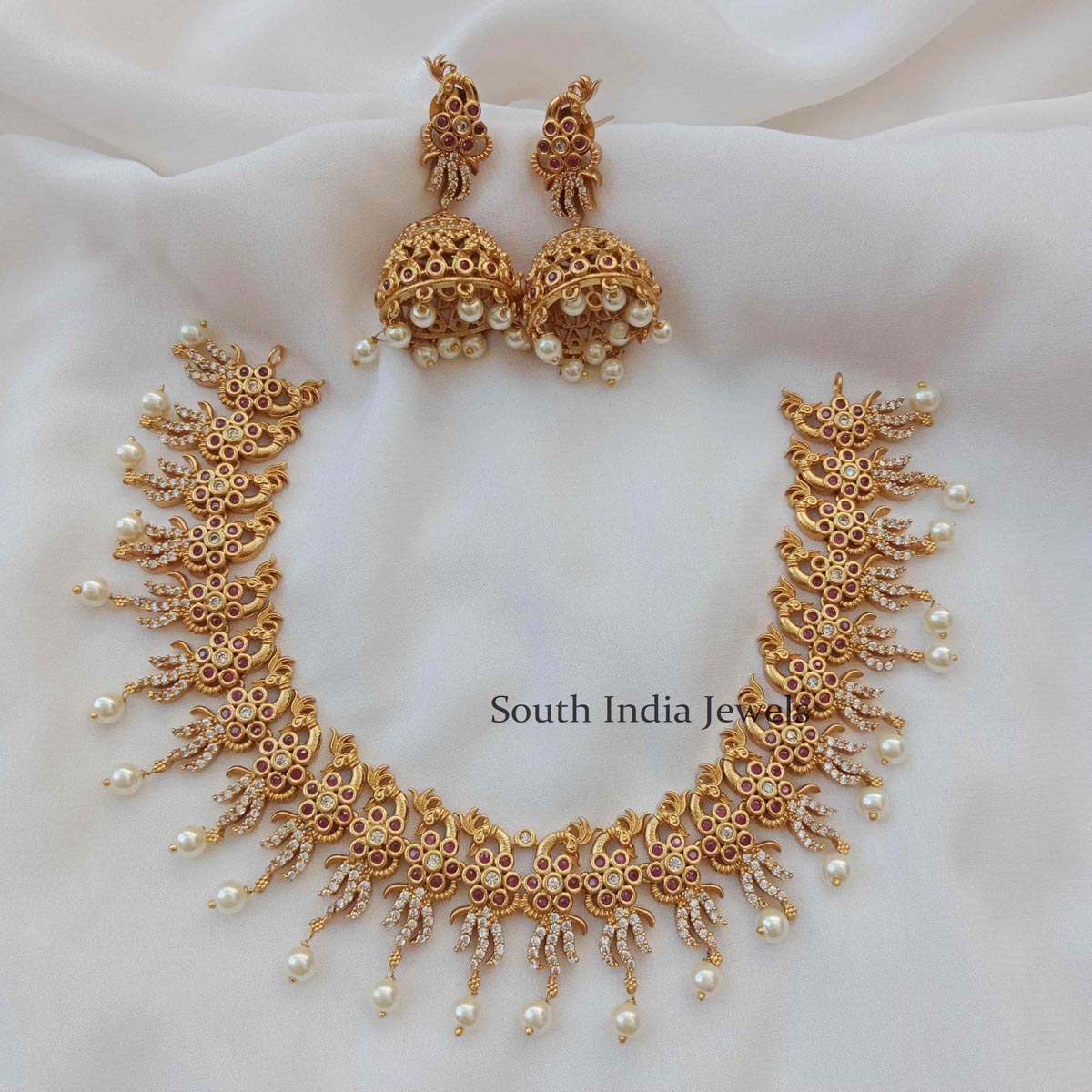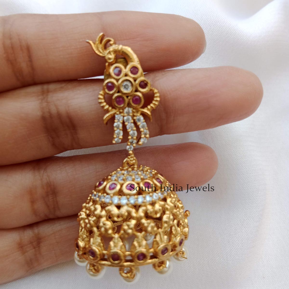 Peacock Earrings with Pearl/Green Bead Drops are a delightful and nature-inspired accessory. These earrings likely feature a peacock design, possibly crafted with intricate details, and adorned with either pearls or green beads as drops.