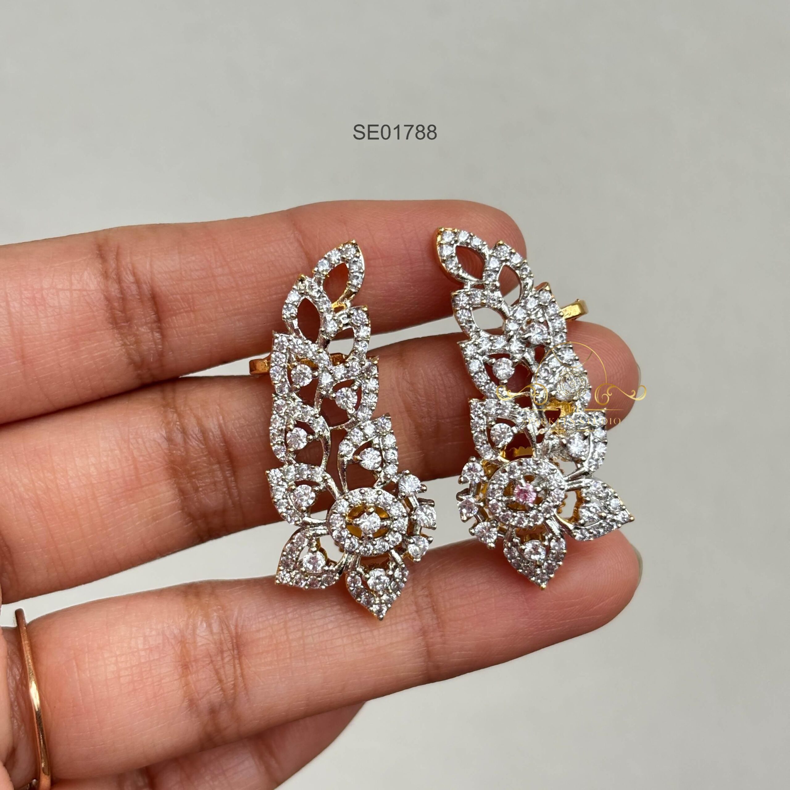 Chic Sparkling AD Earcuff crafted with shimmering stones in a sleek design, offering a modern twist to traditional jewellery. Perfect for parties, festive occasions, and effortless glam styling.