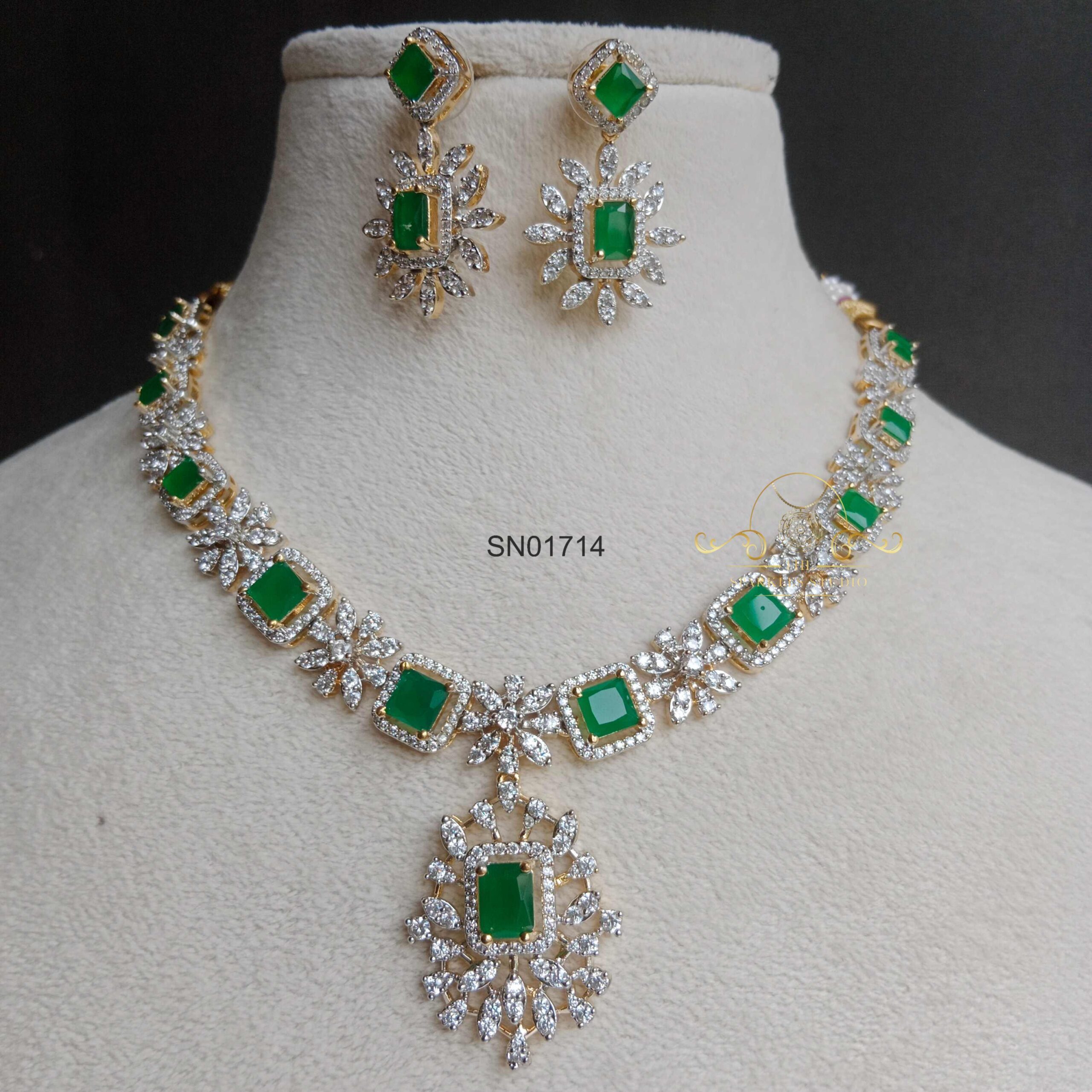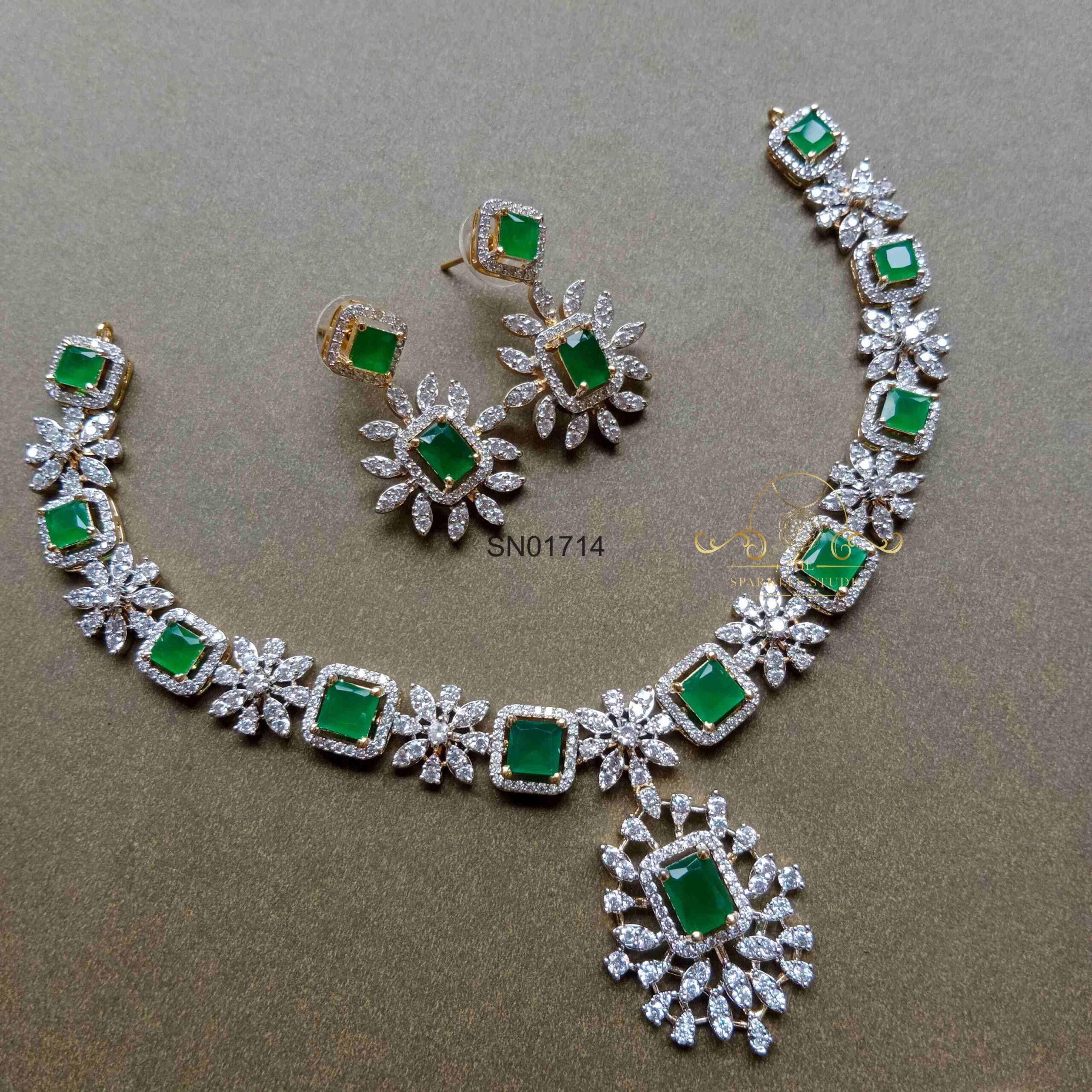 Square and Flower AD Emerald Necklace Set