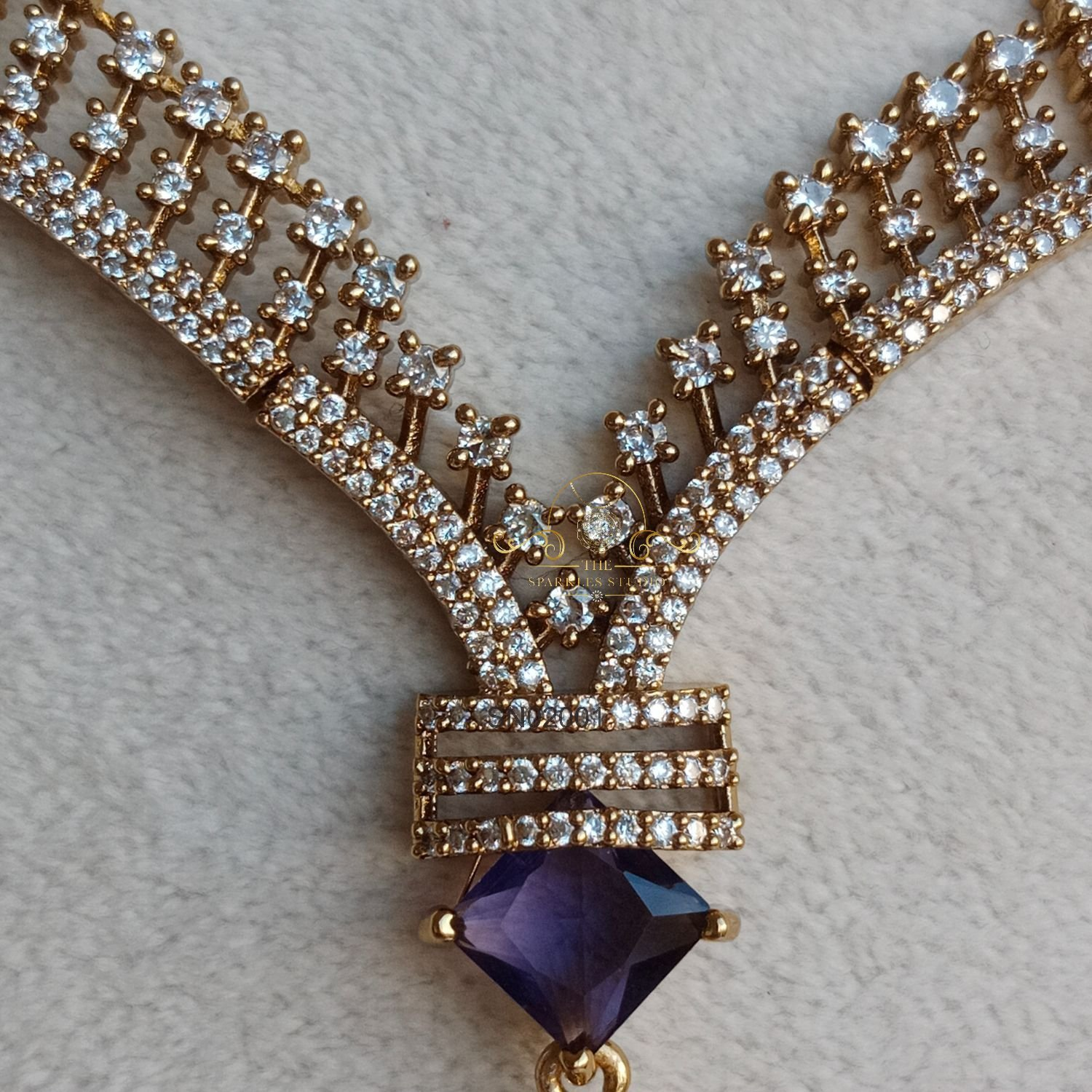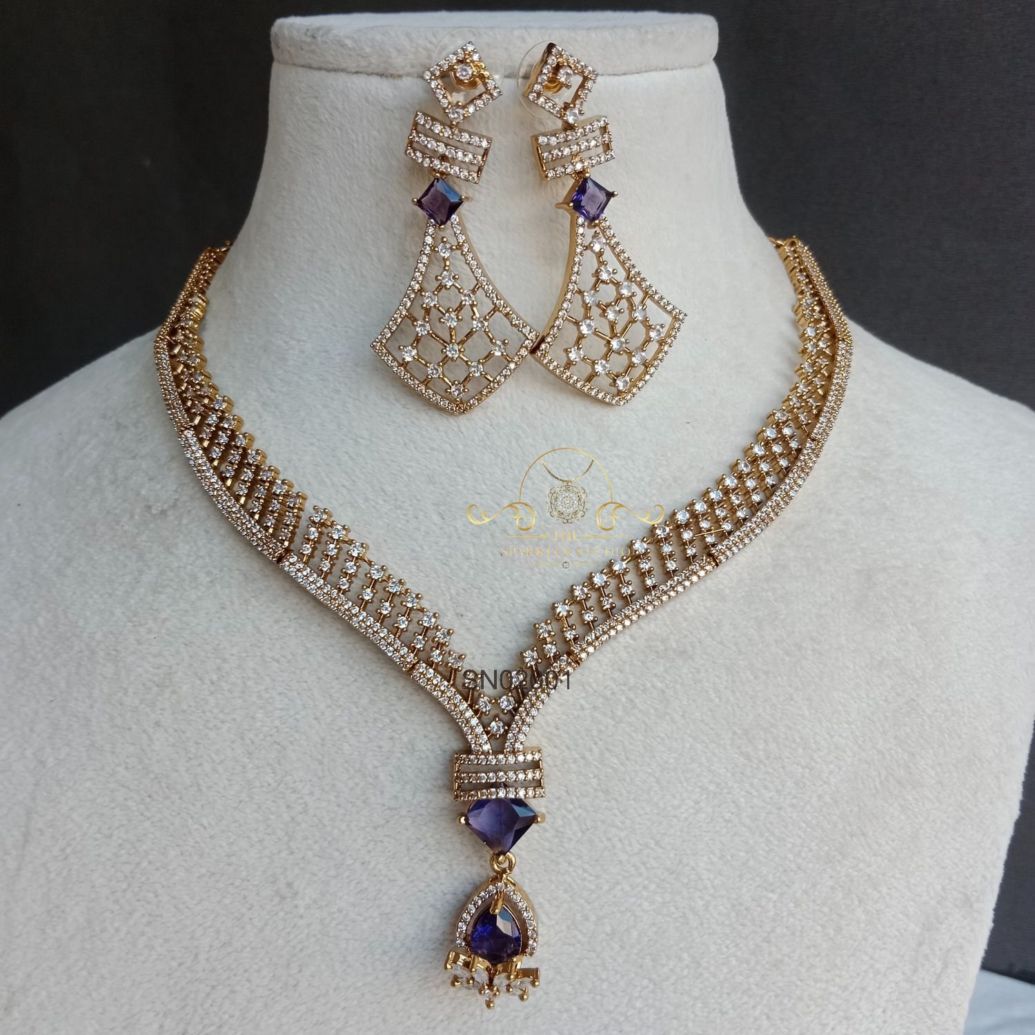 The Stunning Purple Victorian Neckset showcases rich purple stones framed in classic Victorian-style detailing, creating an elegant, regal look—perfect for weddings, receptions, and statement-making ethnic ensembles.