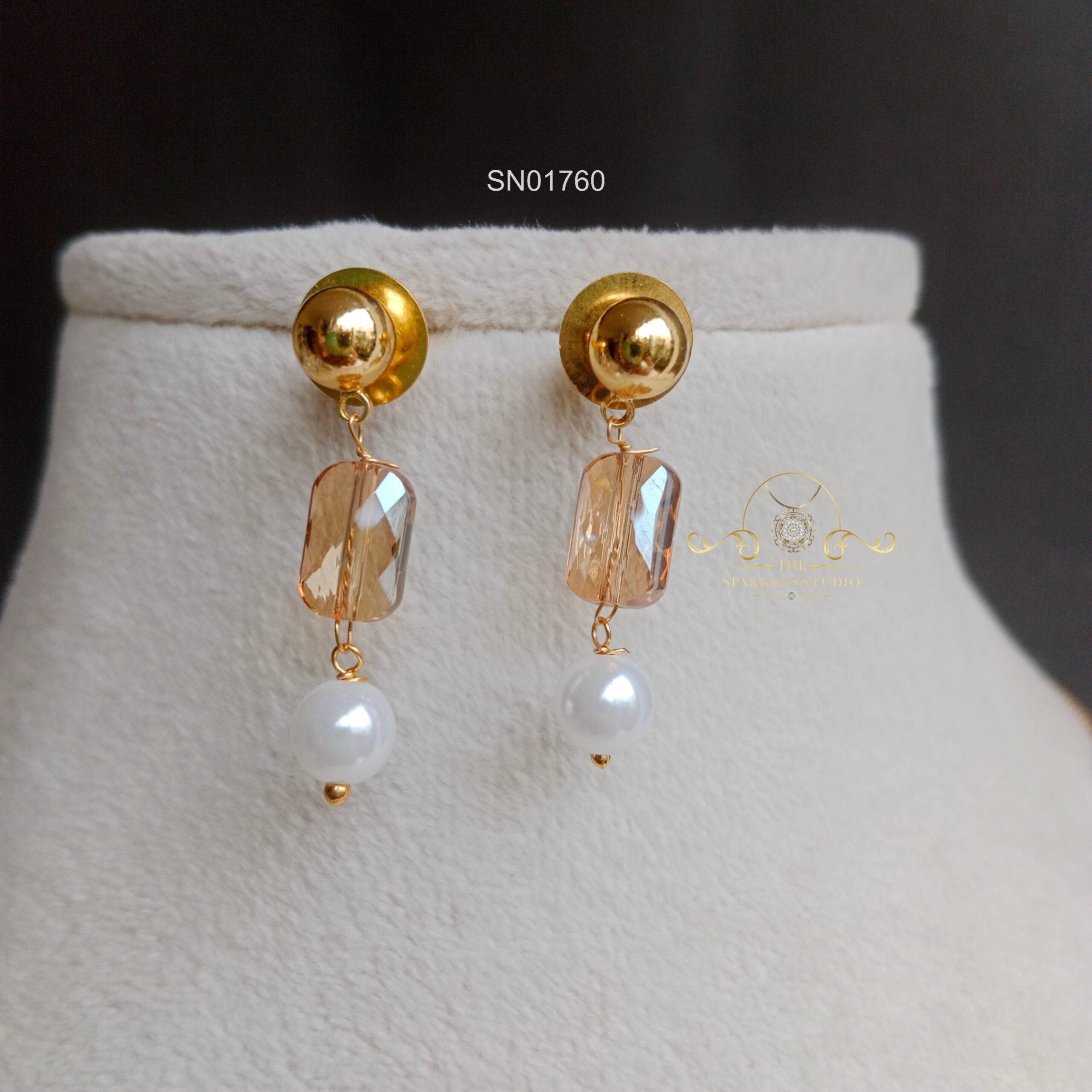 Adorn yourself with the regal charm of Elephant Studs featuring Emerald and White Stone Hanging with Pearl Drops. These intricately designed earrings combine the symbolism of elephants with the richness of emerald and white stones, creating a stunning accessory.
