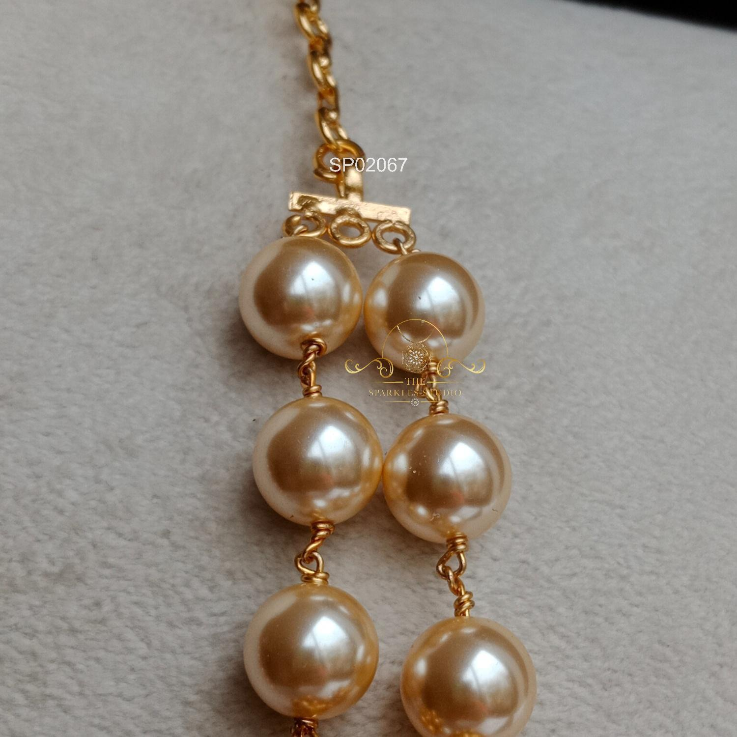 Elegant Two Line Swarovski Pearl Mala featuring radiant crystal pearls arranged in graceful double layers, creating a refined and sophisticated look perfect for weddings, festive occasions, and traditional saree styling.
