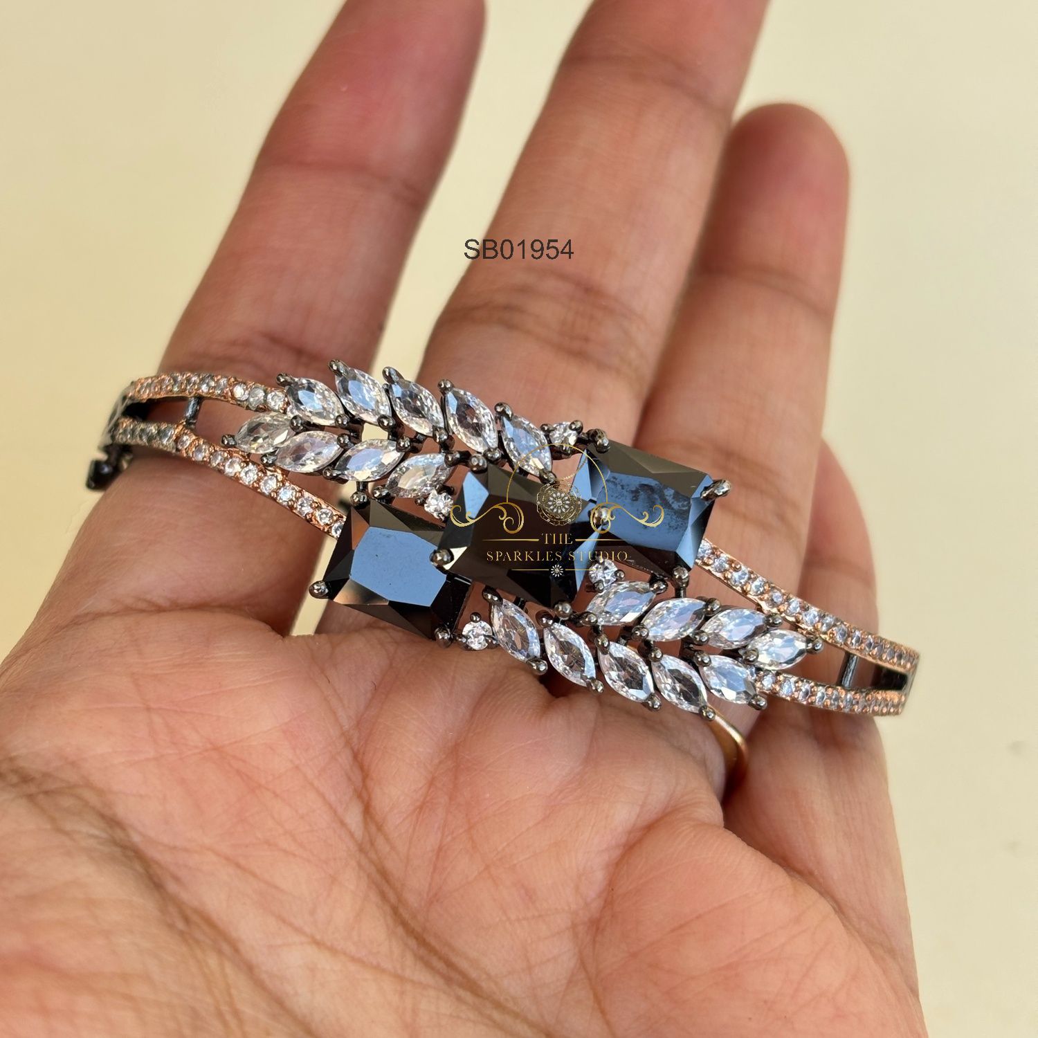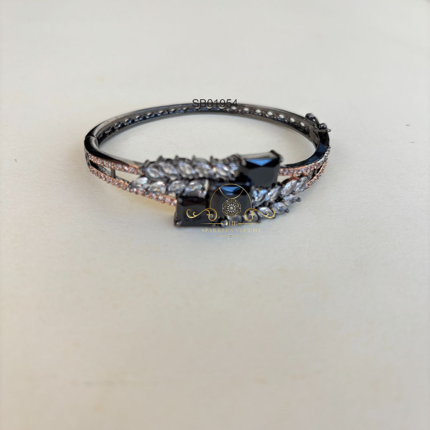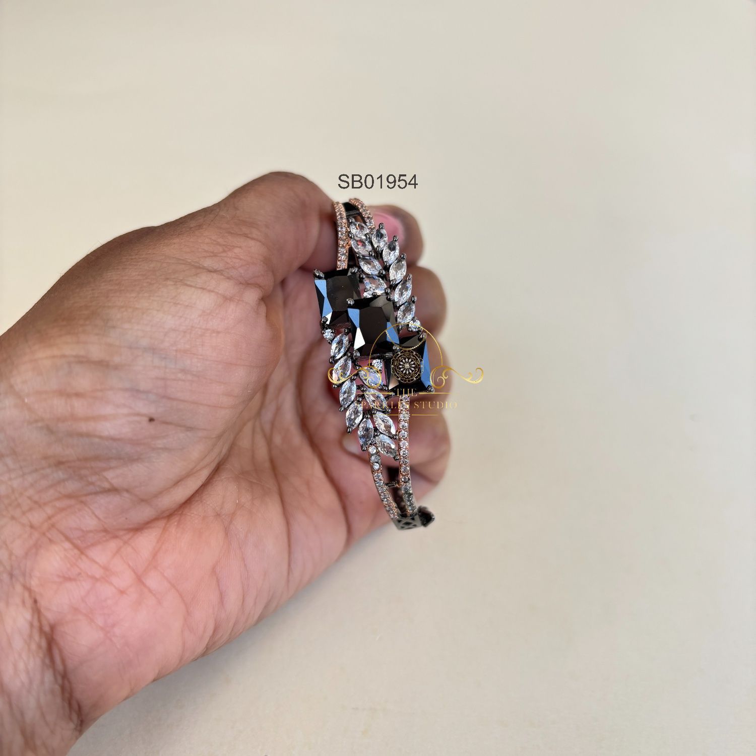 The Pretty Spade Kada is a stylish and elegant wrist accessory. This kada, or bracelet, likely features a design inspired by the shape of a spade, incorporating elements of symmetry and sophistication.
