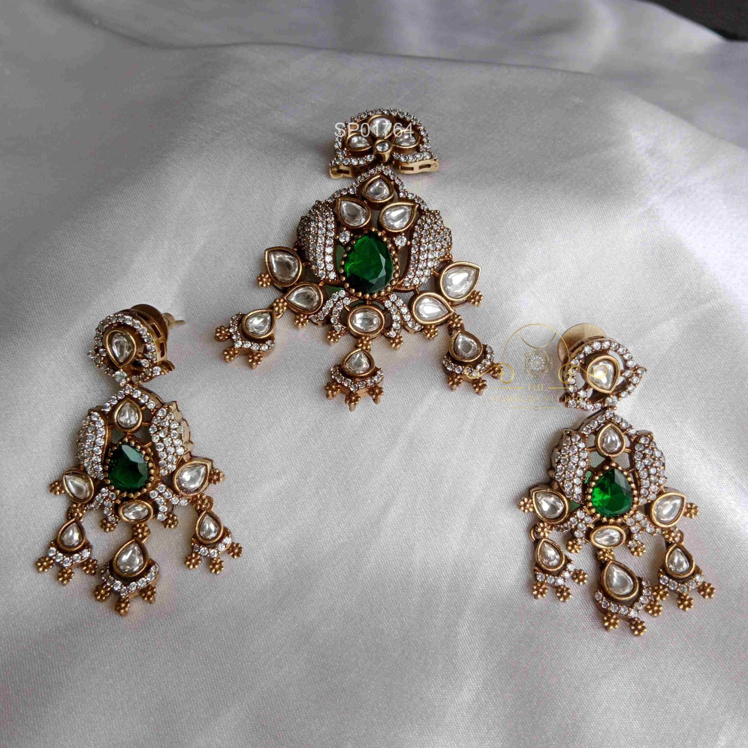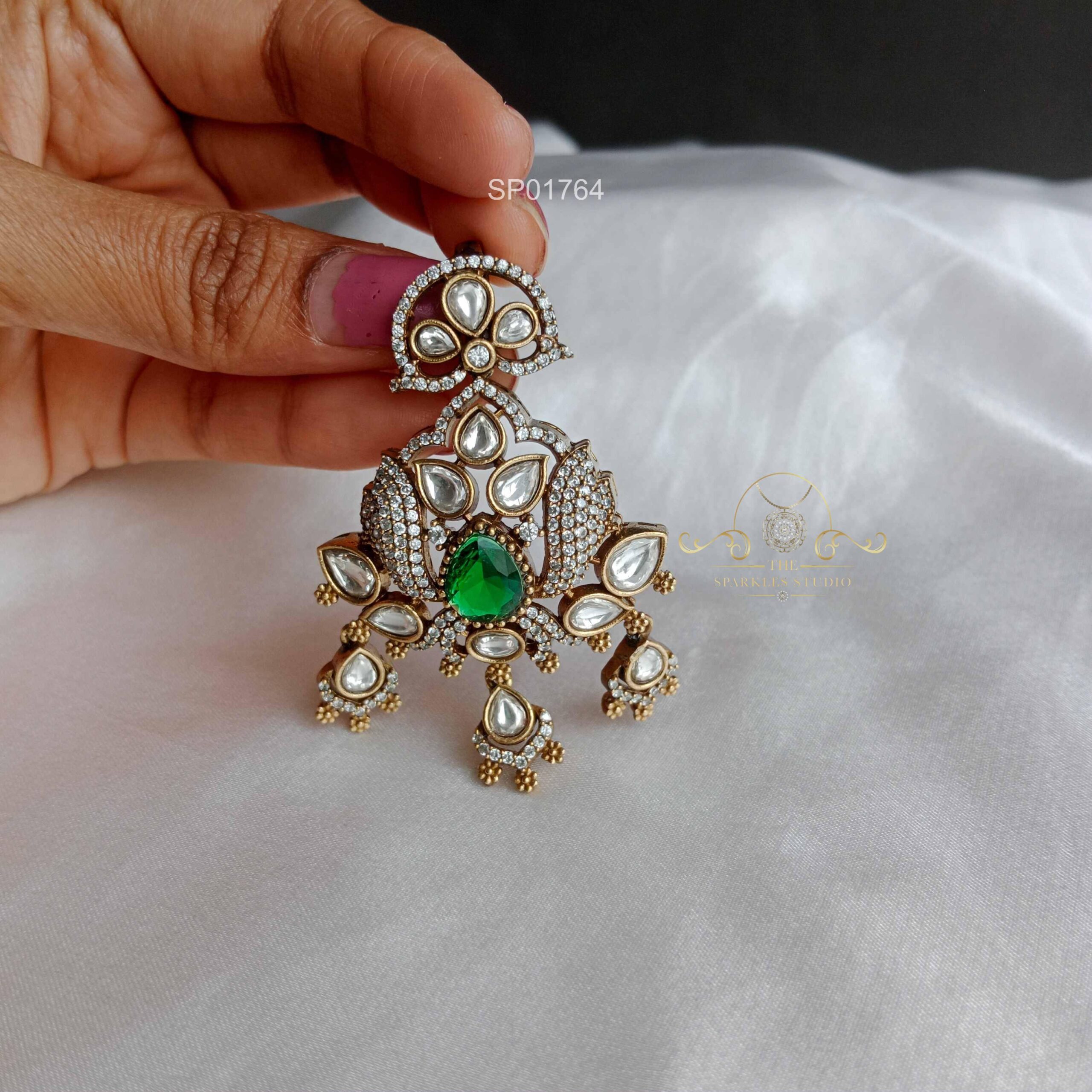Elegant Victorian emerald pendant set with antique-inspired detailing, sparkling stones, and timeless charm, perfect to elevate your traditional outfits with a regal touch of vintage sophistication and graceful allure.