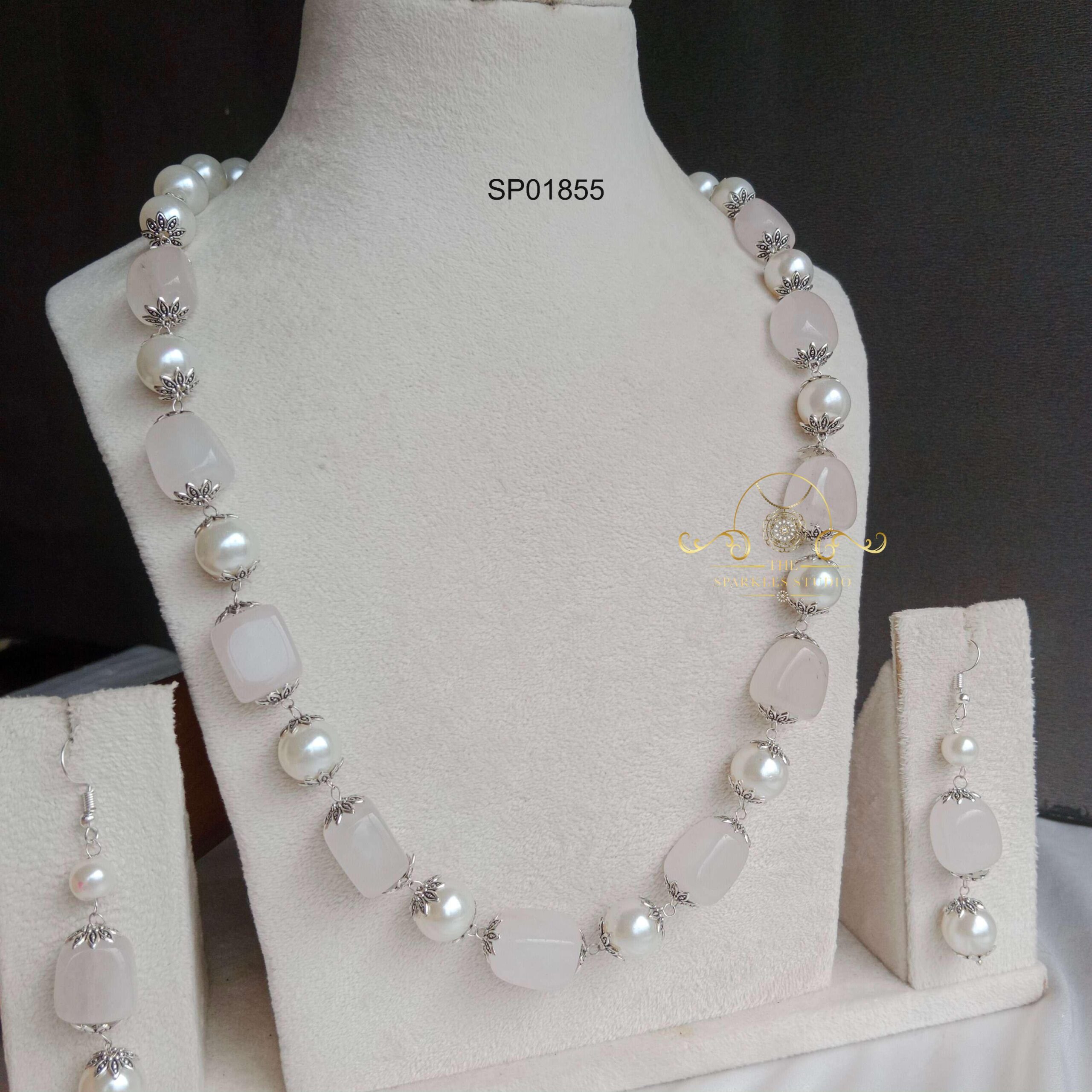 White bead and pearl mala set featuring soft, elegant tones with a graceful traditional finish. Perfect for bridal, festive, and everyday ethnic wear, adding subtle sophistication and timeless feminine charm.
