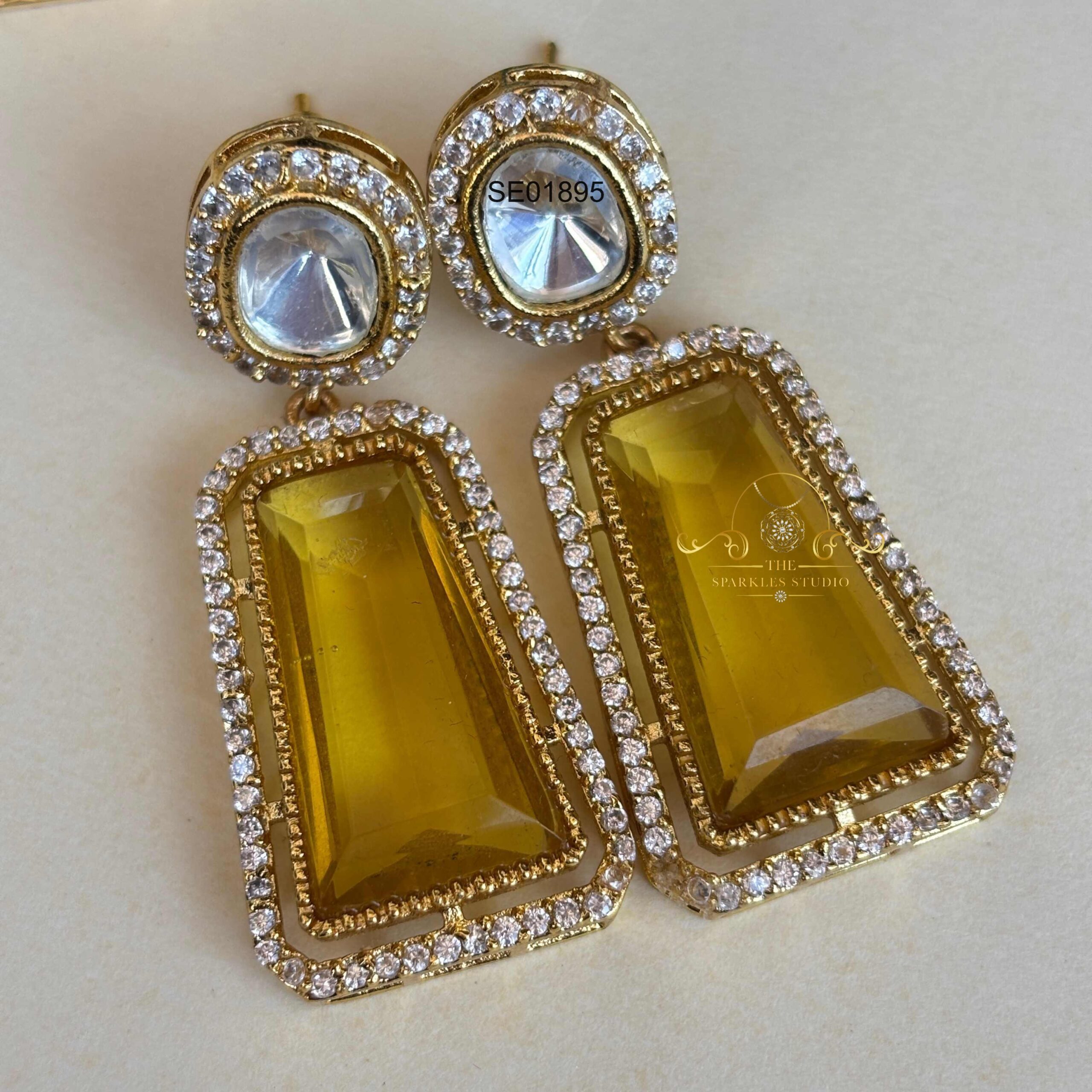 Yellow/blue stone drop earrings featuring vibrant dual-tone stones and elegant dangling design. Perfect for festive and party outfits, adding playful color contrast, graceful movement, and stylish standout charm to your look.